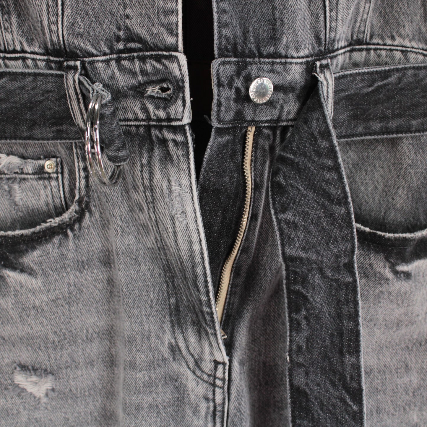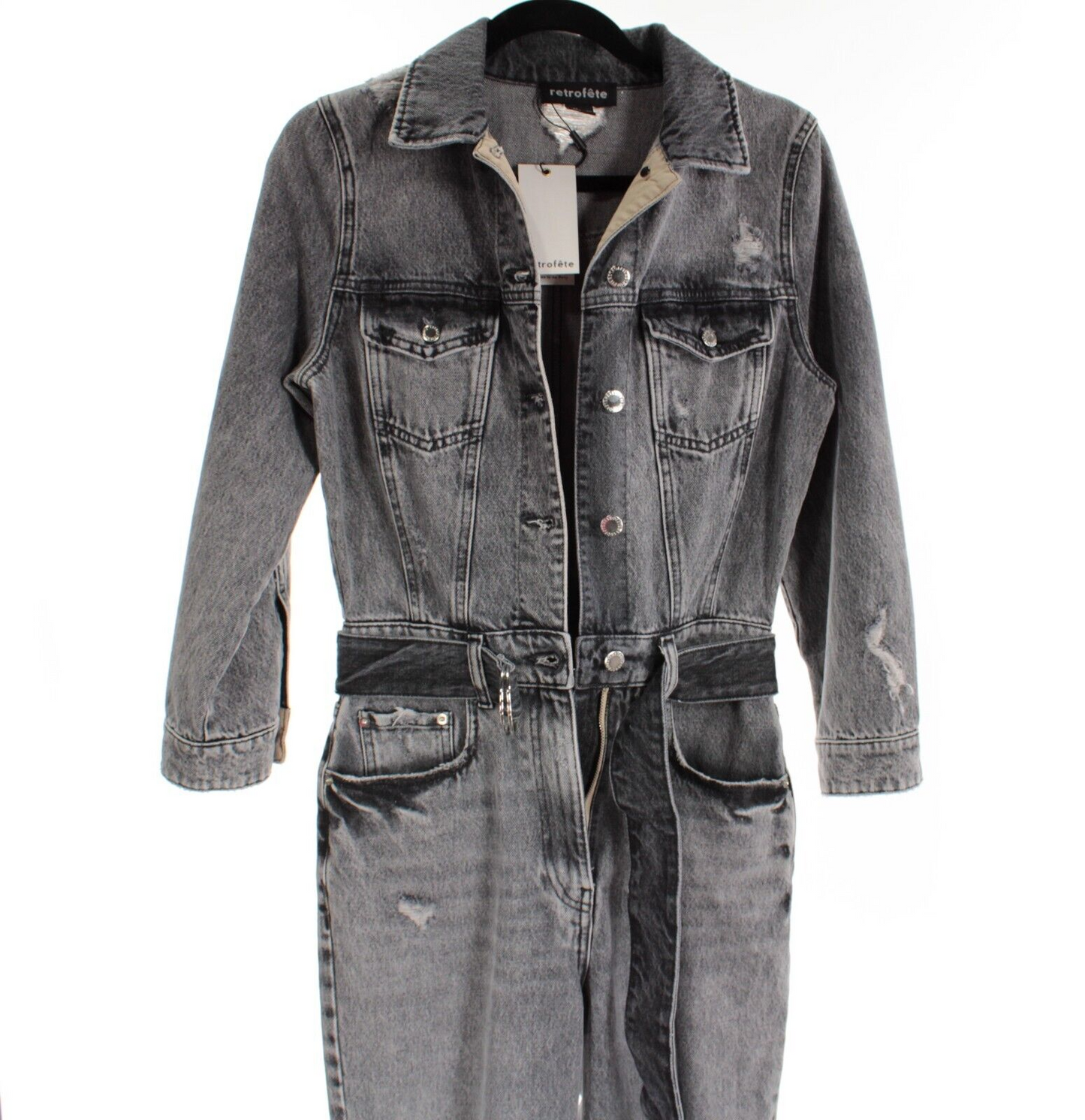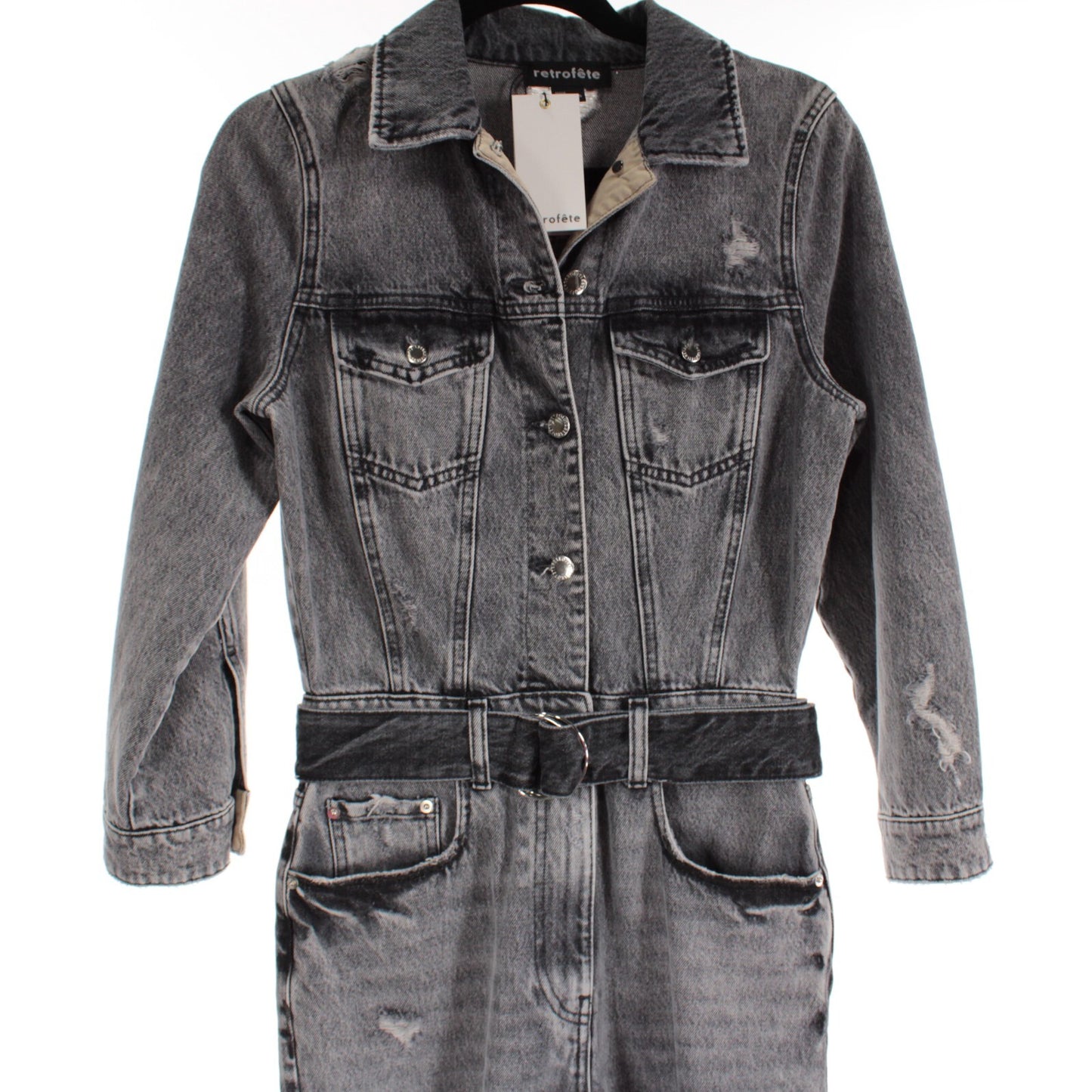 Retrofete NWT Renee Faded Distressed Jumpsuit Size 25 in Gray Denim 100% Cotton