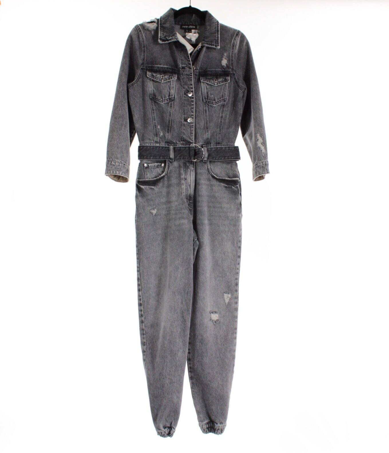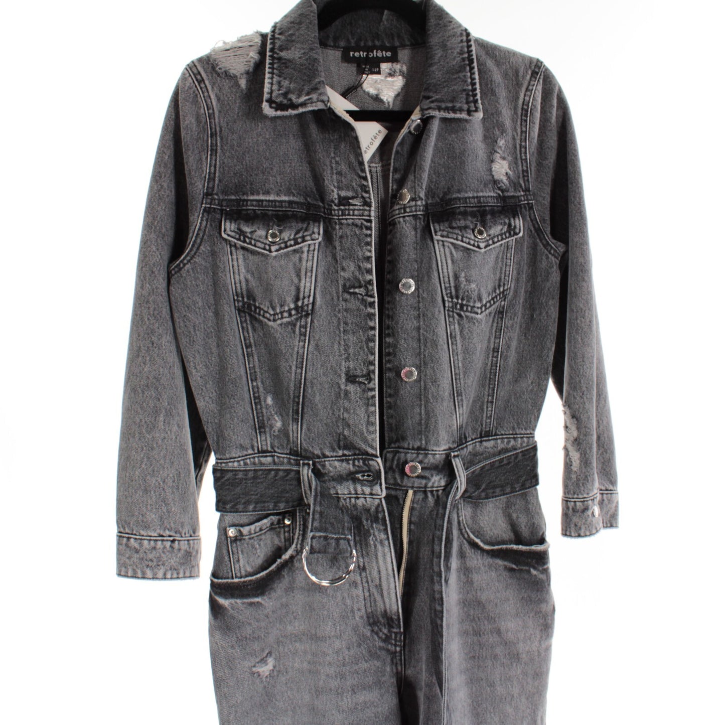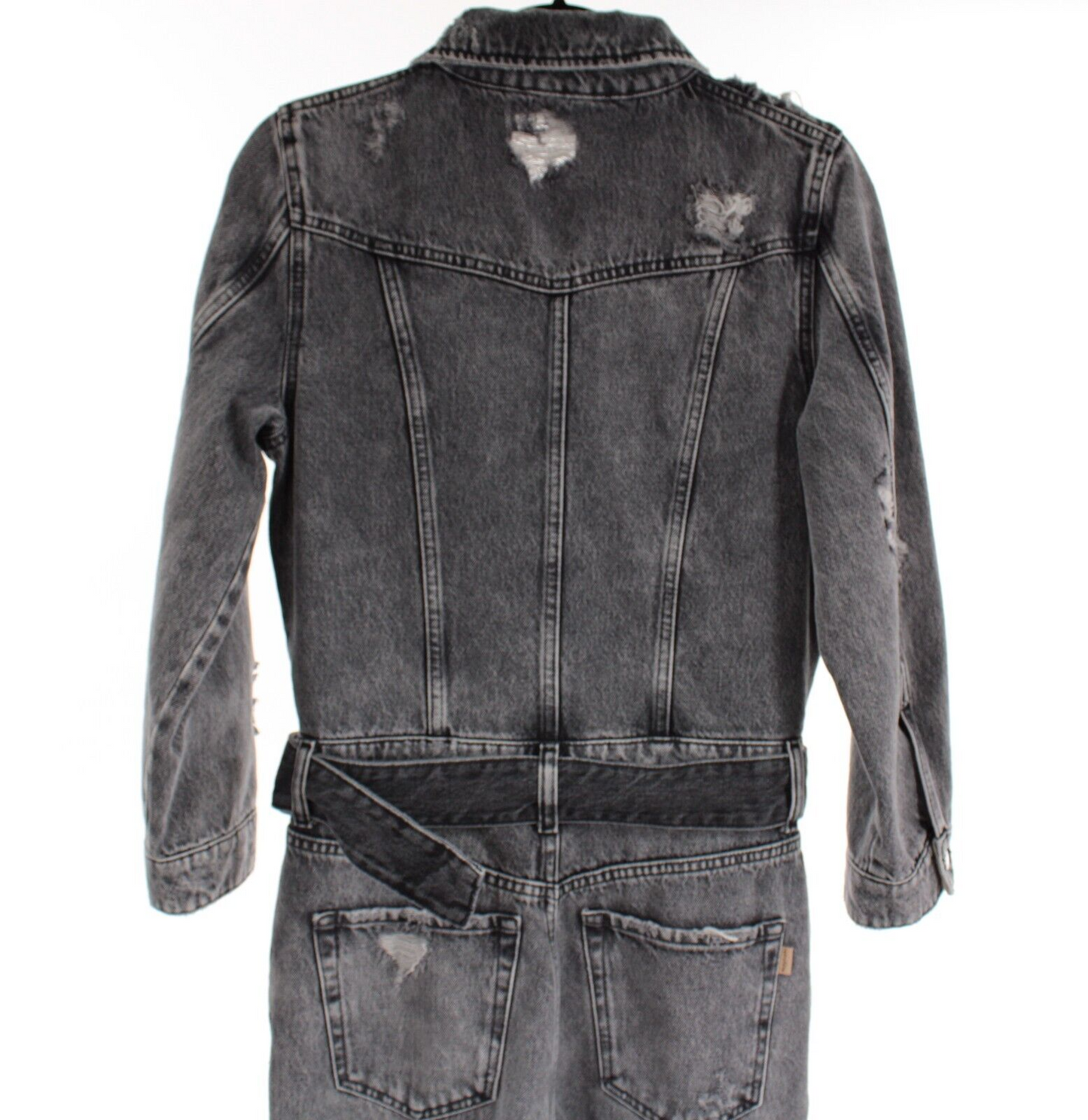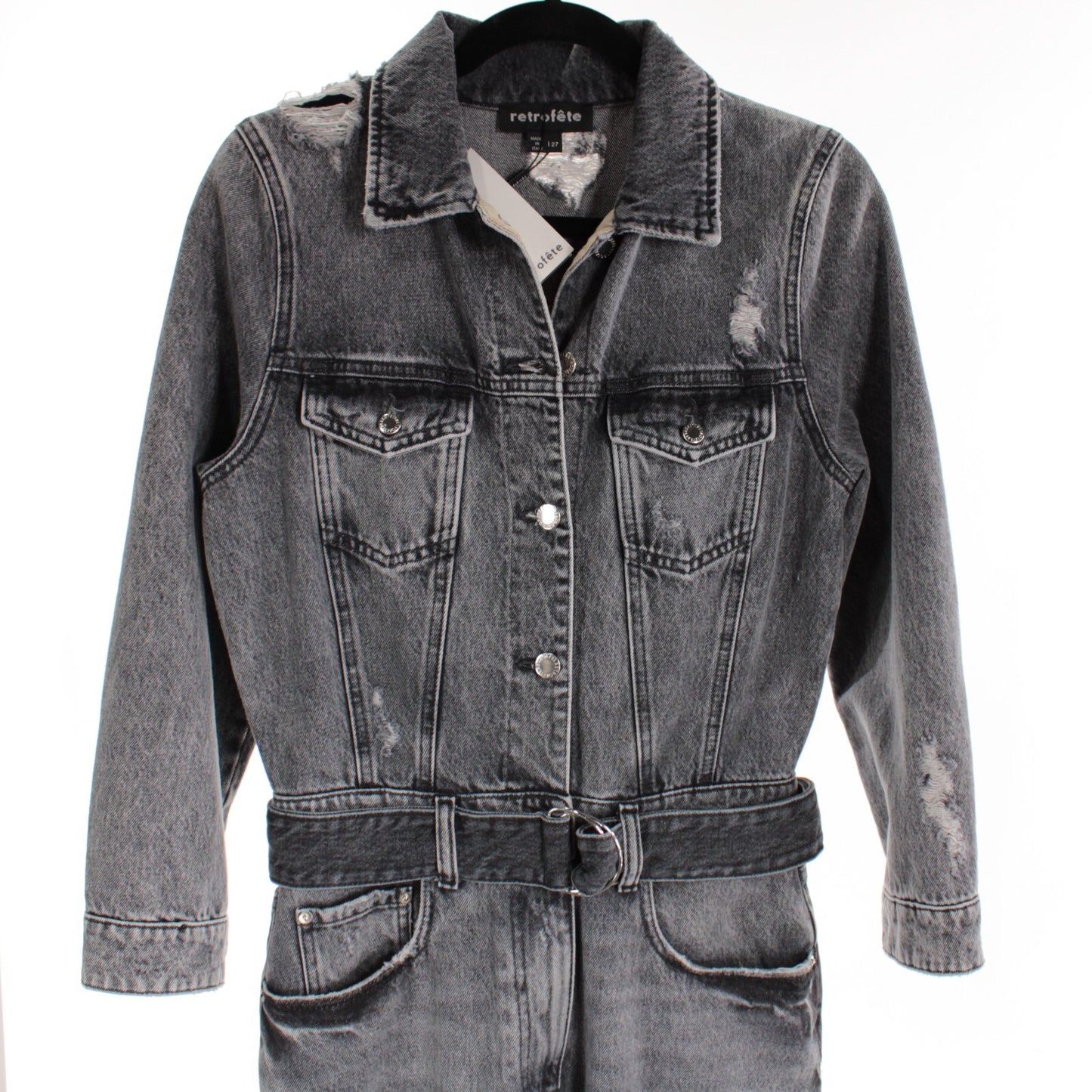 Retrofete NWT Renee Faded Distressed Jumpsuit Size 27 in Gray Denim 100% Cotton