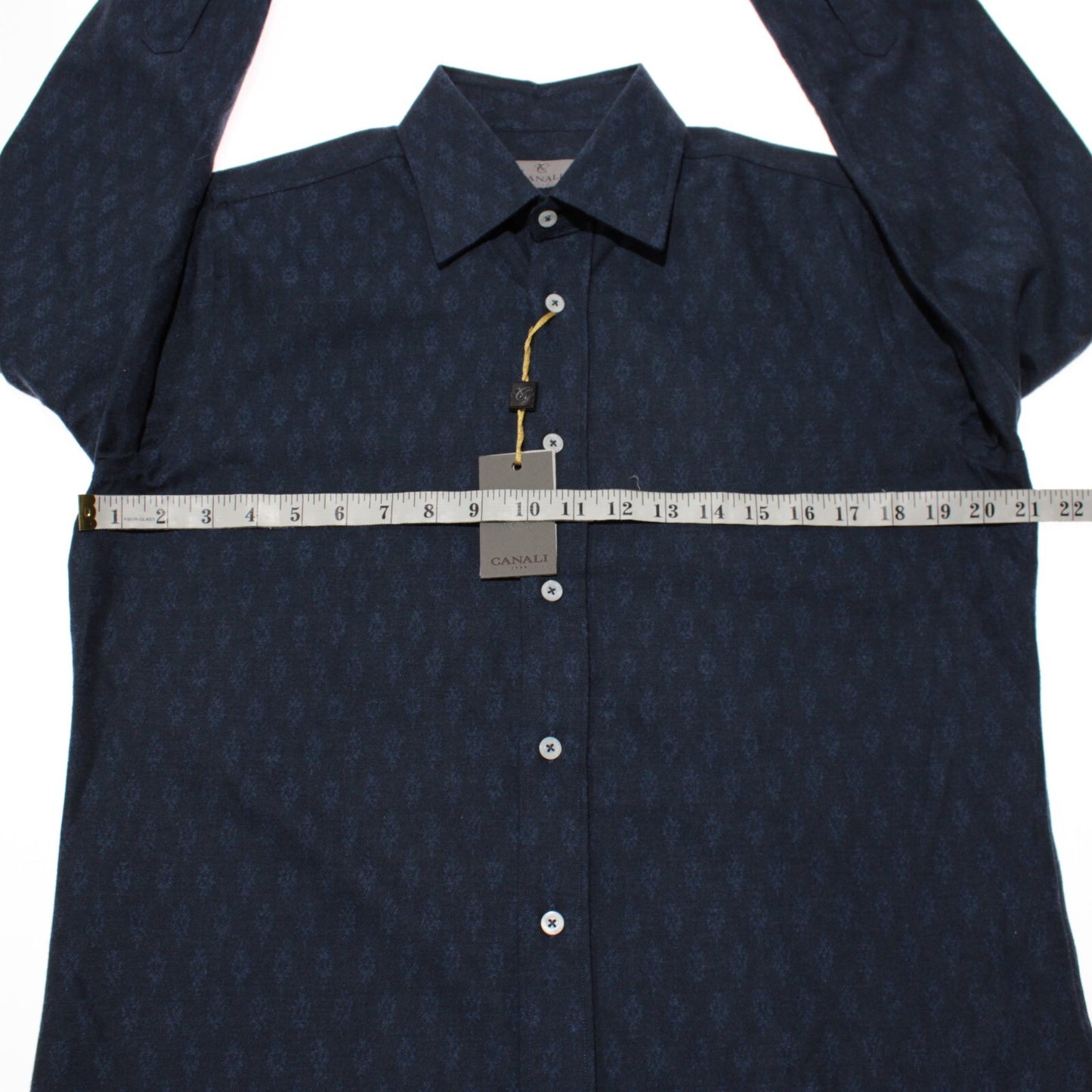 Canali NWT Casual Button Down Shirt Size Medium in Blue Pattern 100% Cotton