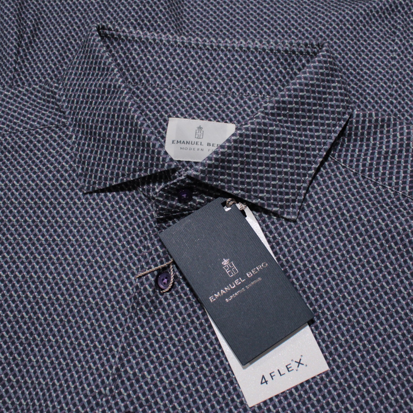 Emanuel Berg NWT Byron Casual Button Down Shirt Sz 44 17.5 XL Purple Woven Print