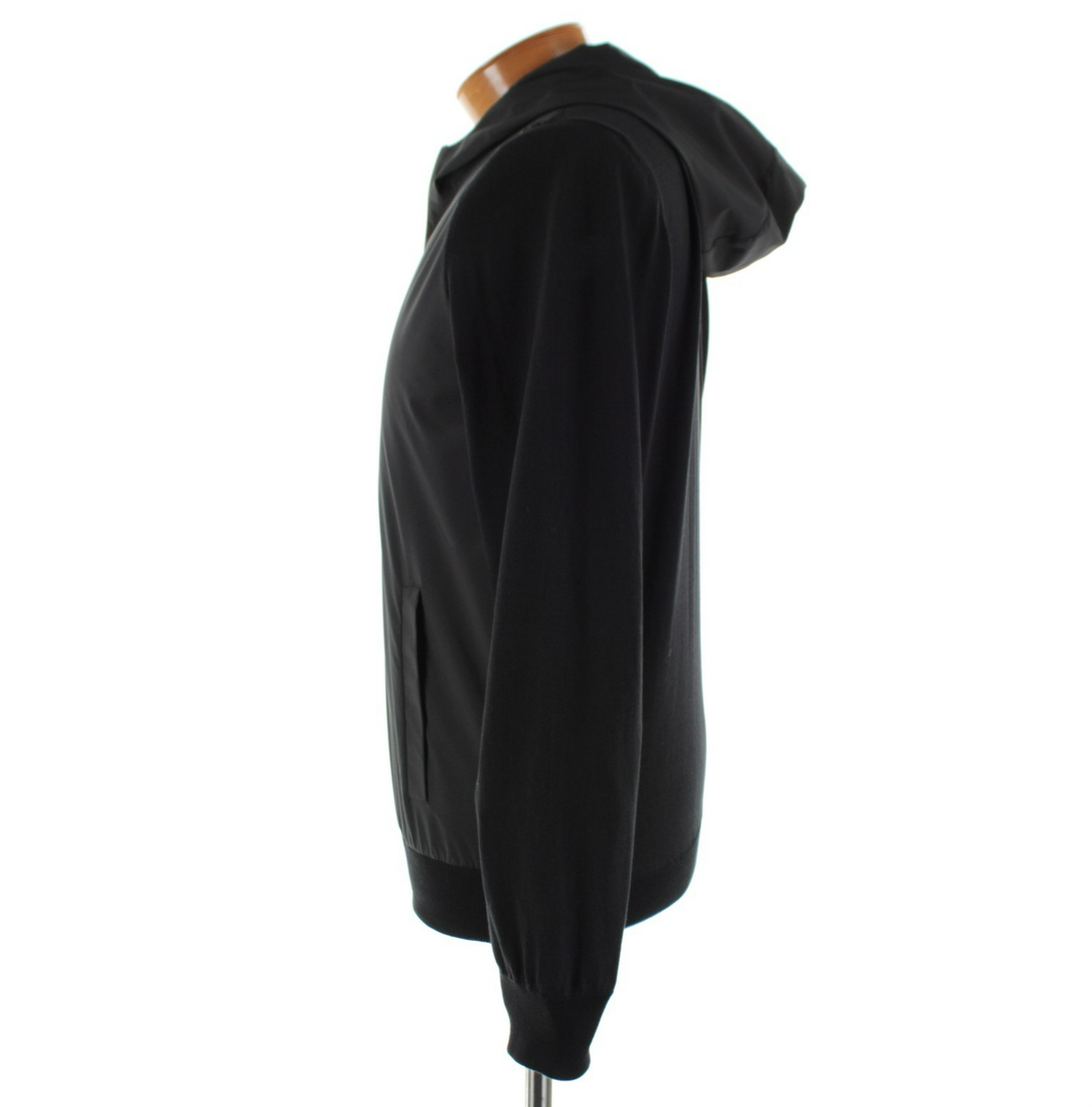 Gran Sasso NWT Cotton Mixed Media Hooded Jacket Size 52 (L US) In Solid Black