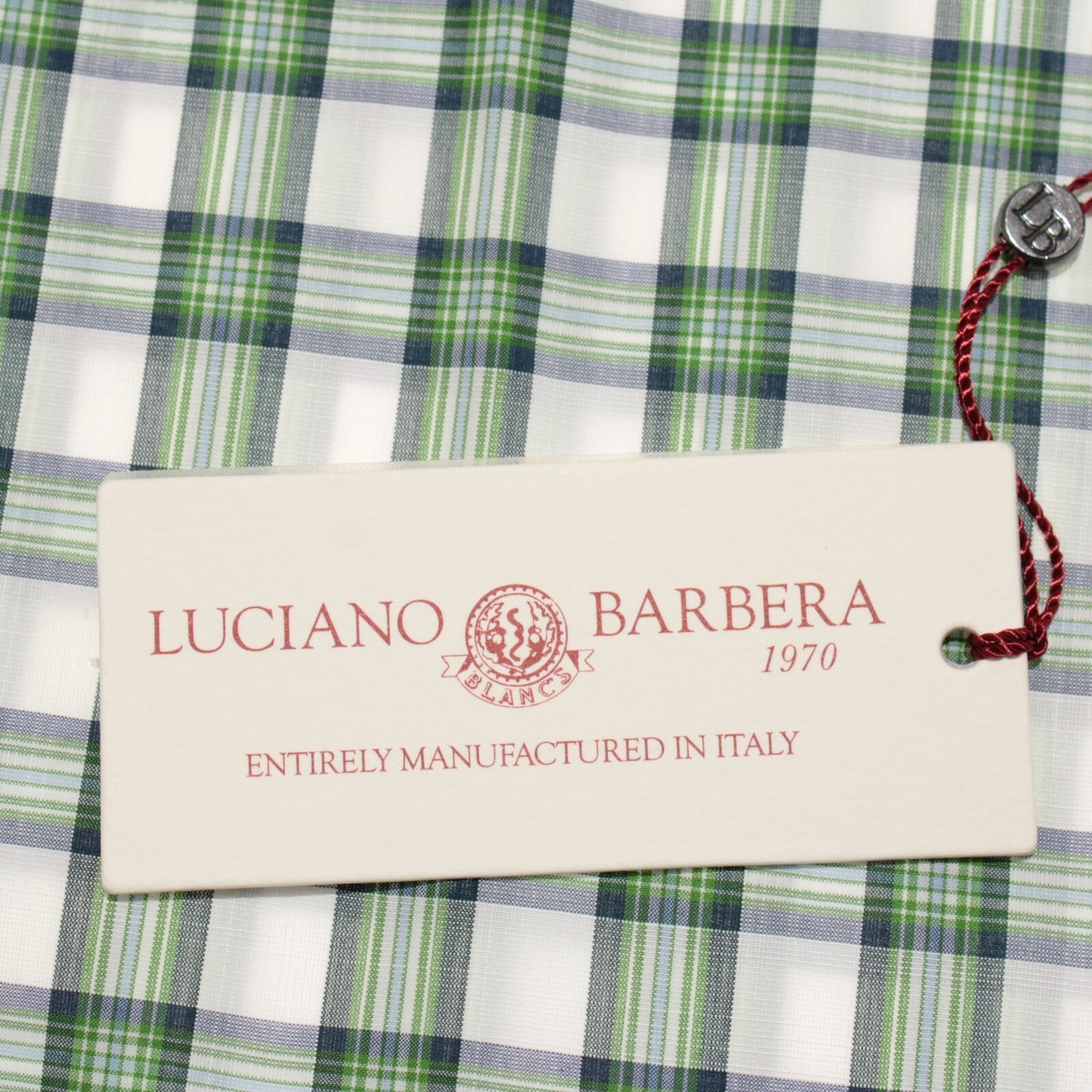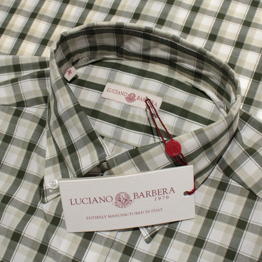 Luciano Barbera NWT Casual Button Down Shirt Size M in Green Plaid 100% Cotton