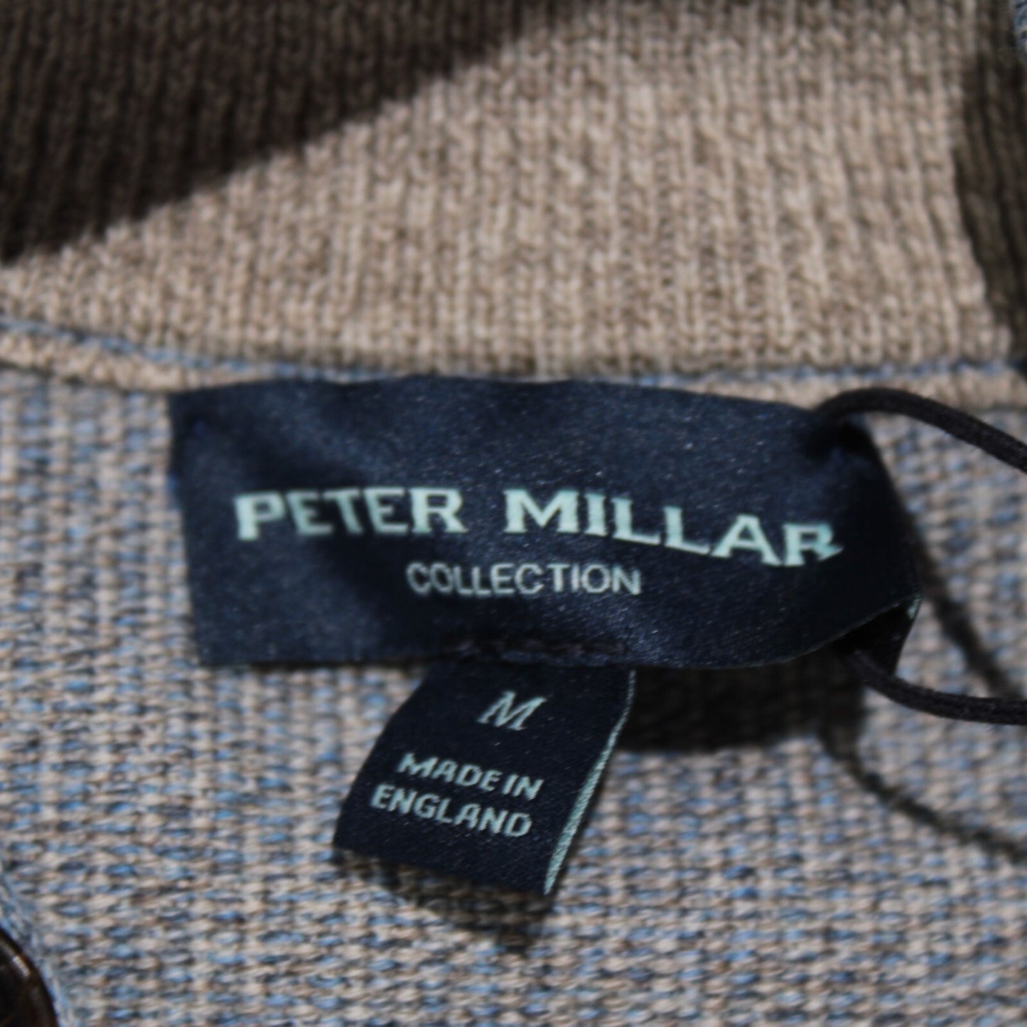 Peter Millar NWT Pullover Henley Sweater Size M in Blue & Gray 100% Wool