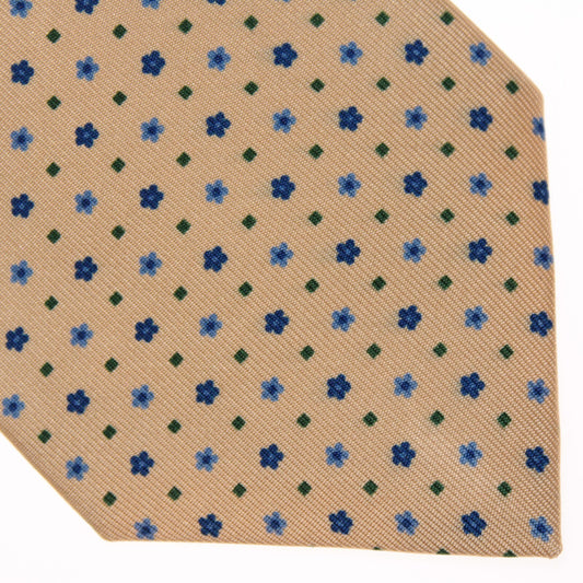 Drake's NWT Neck Tie in Beige with Blue & Green Mini Floral/Geo Print 100% Silk