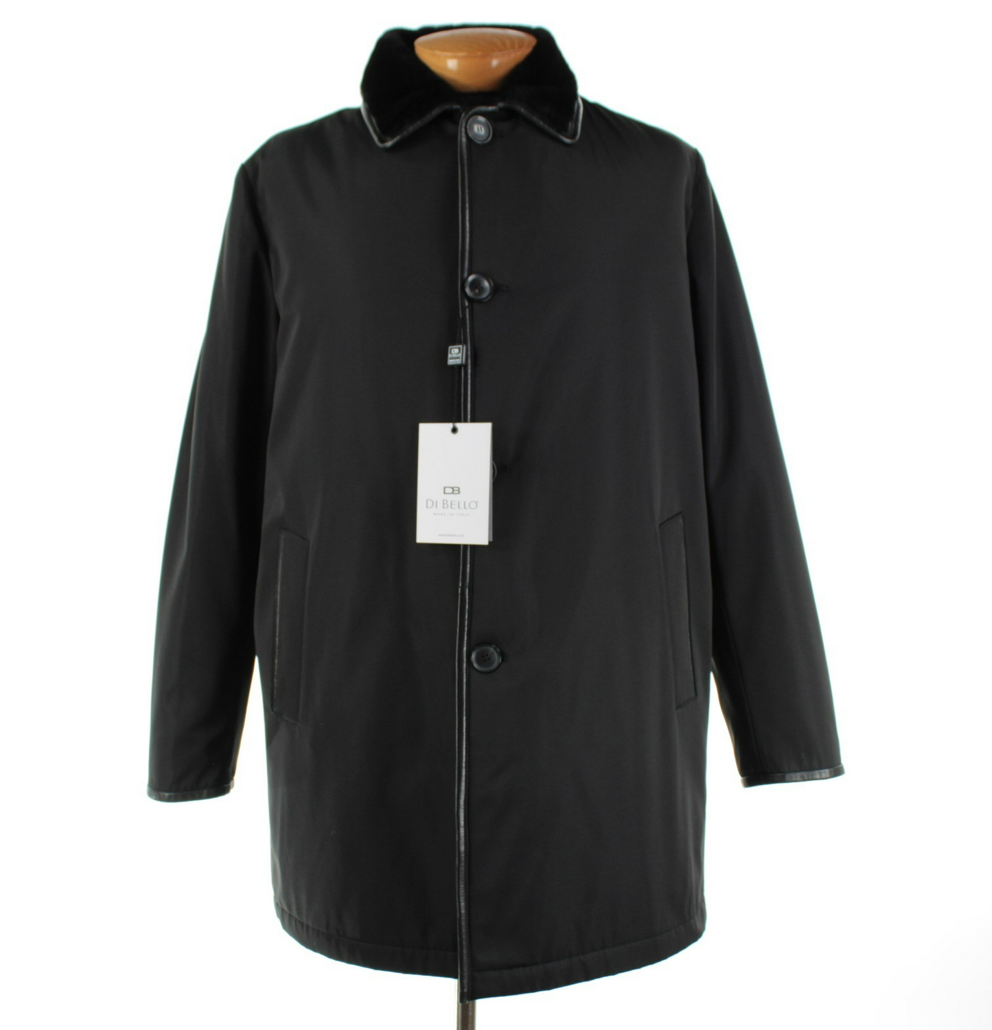 Di Bello NWT Down Coat w/ Removable Hood & Shearling Trim Collar 56 US XXL Black