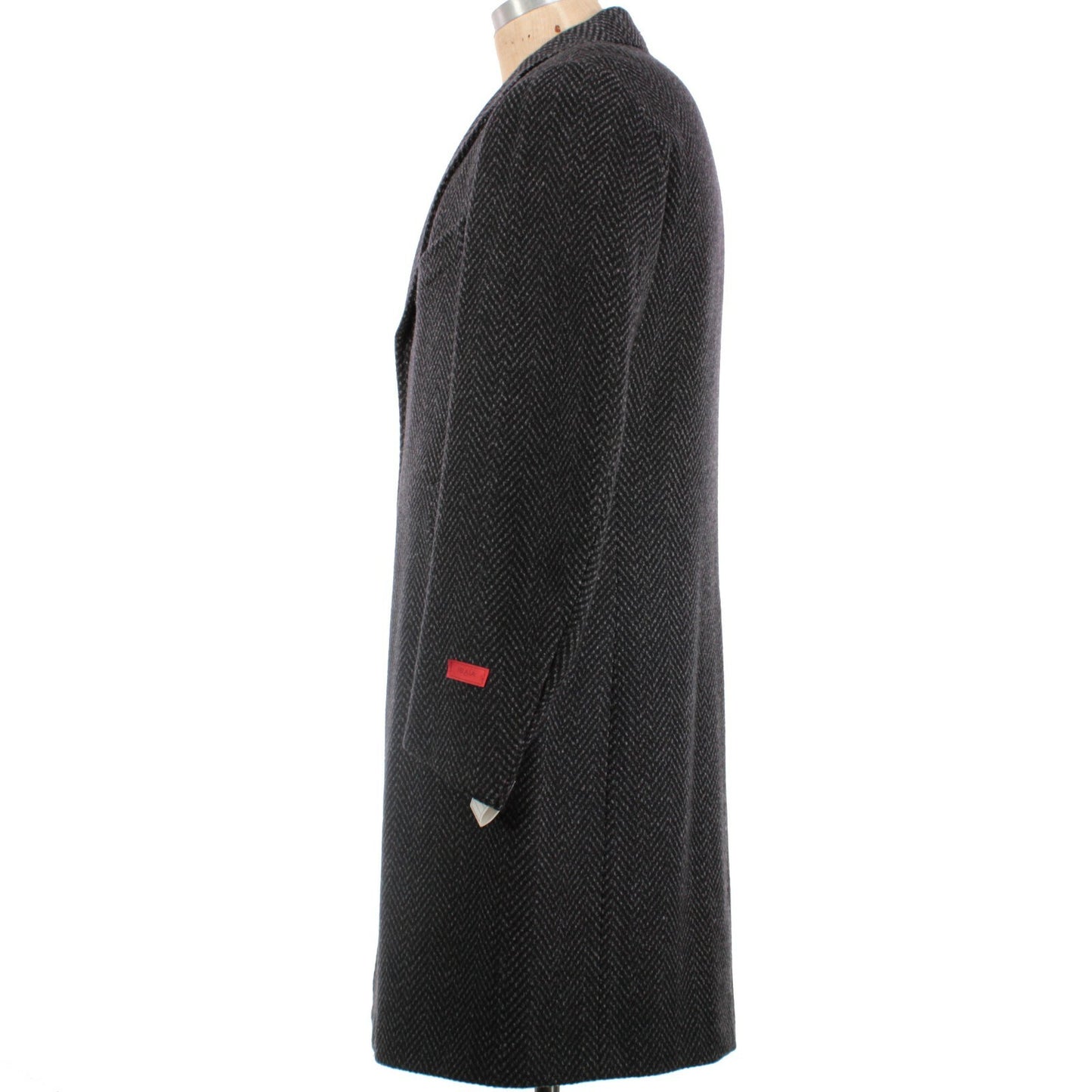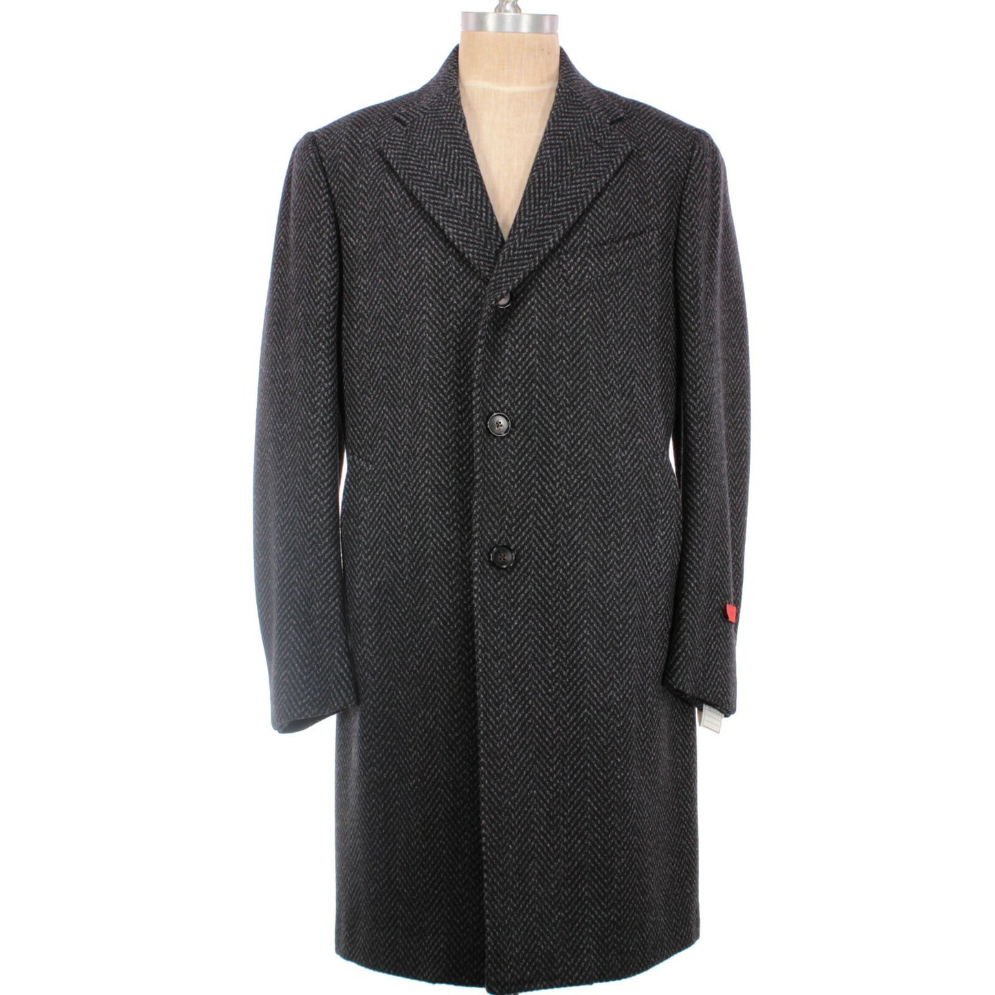Isaia NWT 100% Wool Long Coat Size 52R US L in Gray/Black Herringbone