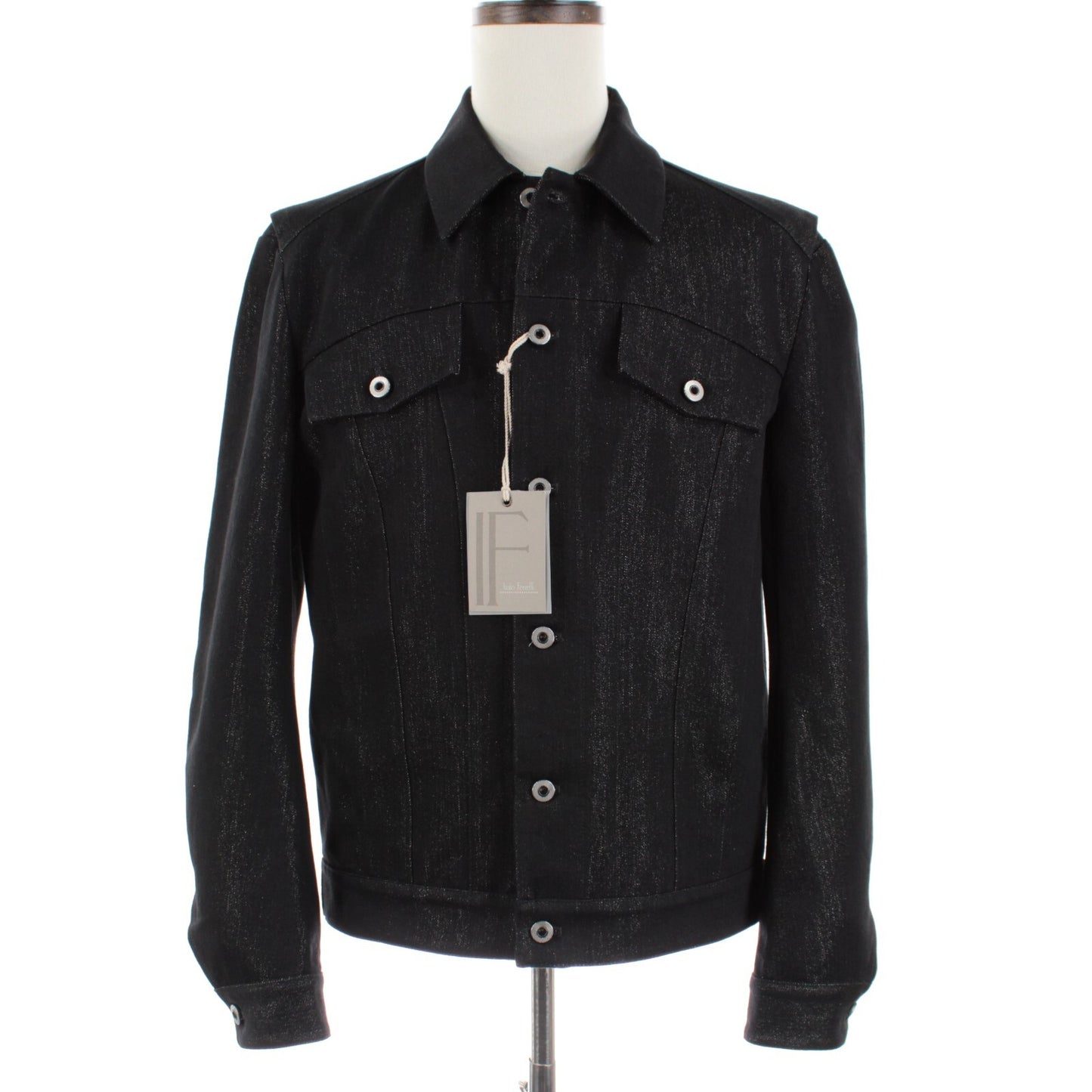 Italo Ferretti NWT Cotton Blend Jean Jacket Size L In Black w/ Silver Speckles
