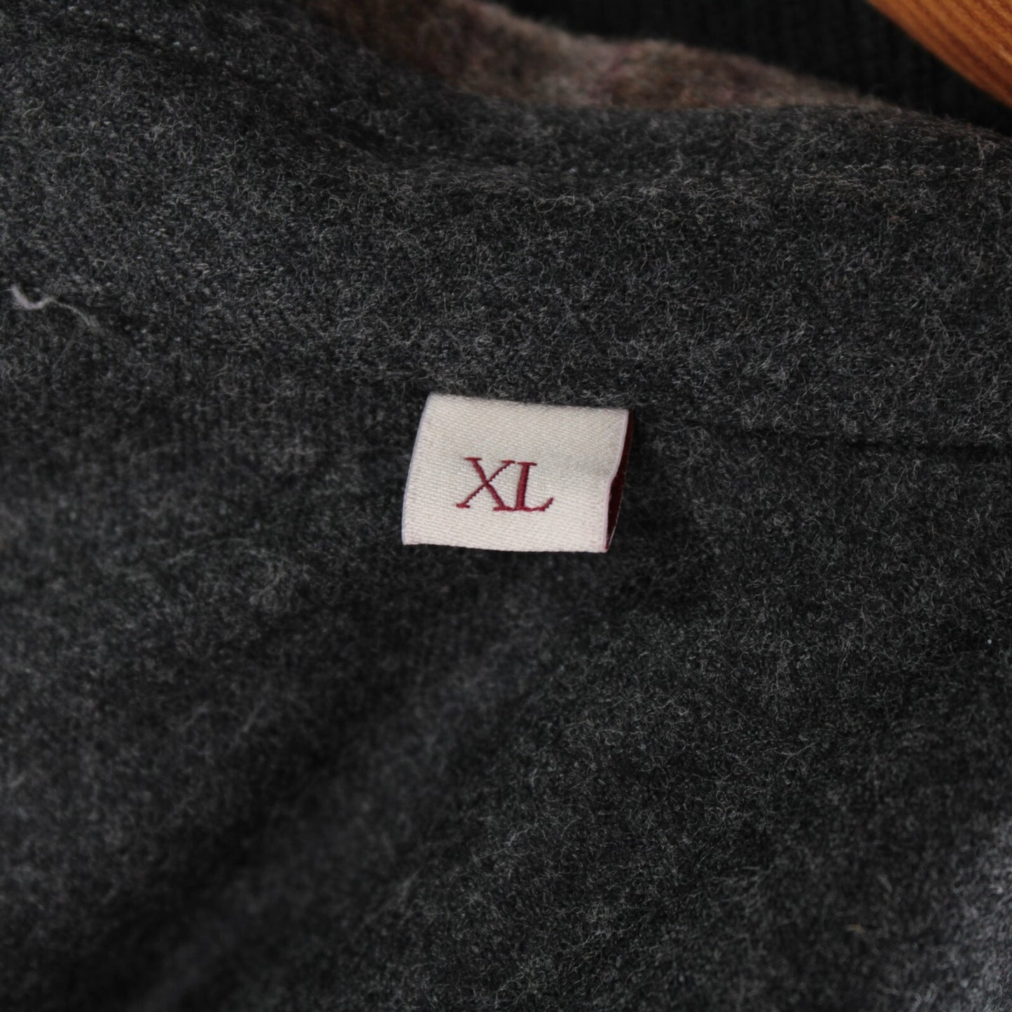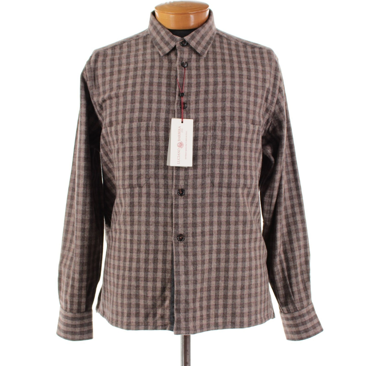 Luciano Barbera NWT Wool Cashmere Overshirt Size XL In Brown w/ Burgundy Plaid
