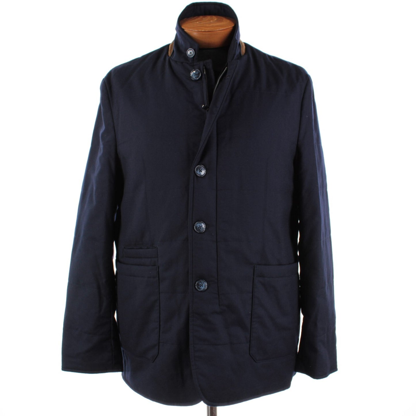 Zanella NWT Vitale Barberis Canonico Wool Car Coat w/ Suede Size L US In Navy