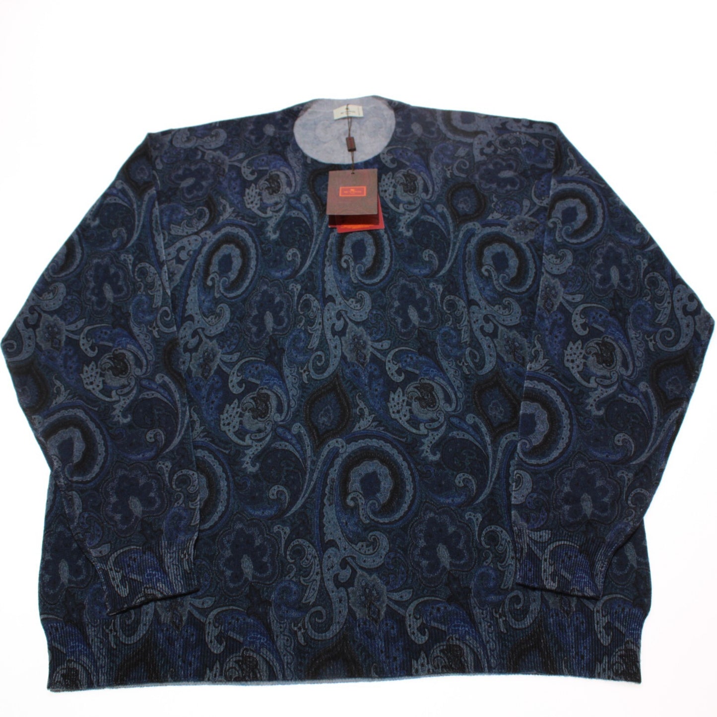 Etro NWT Pullover Crew Neck Sweater Size XXL in Blue Paisley 100% Wool