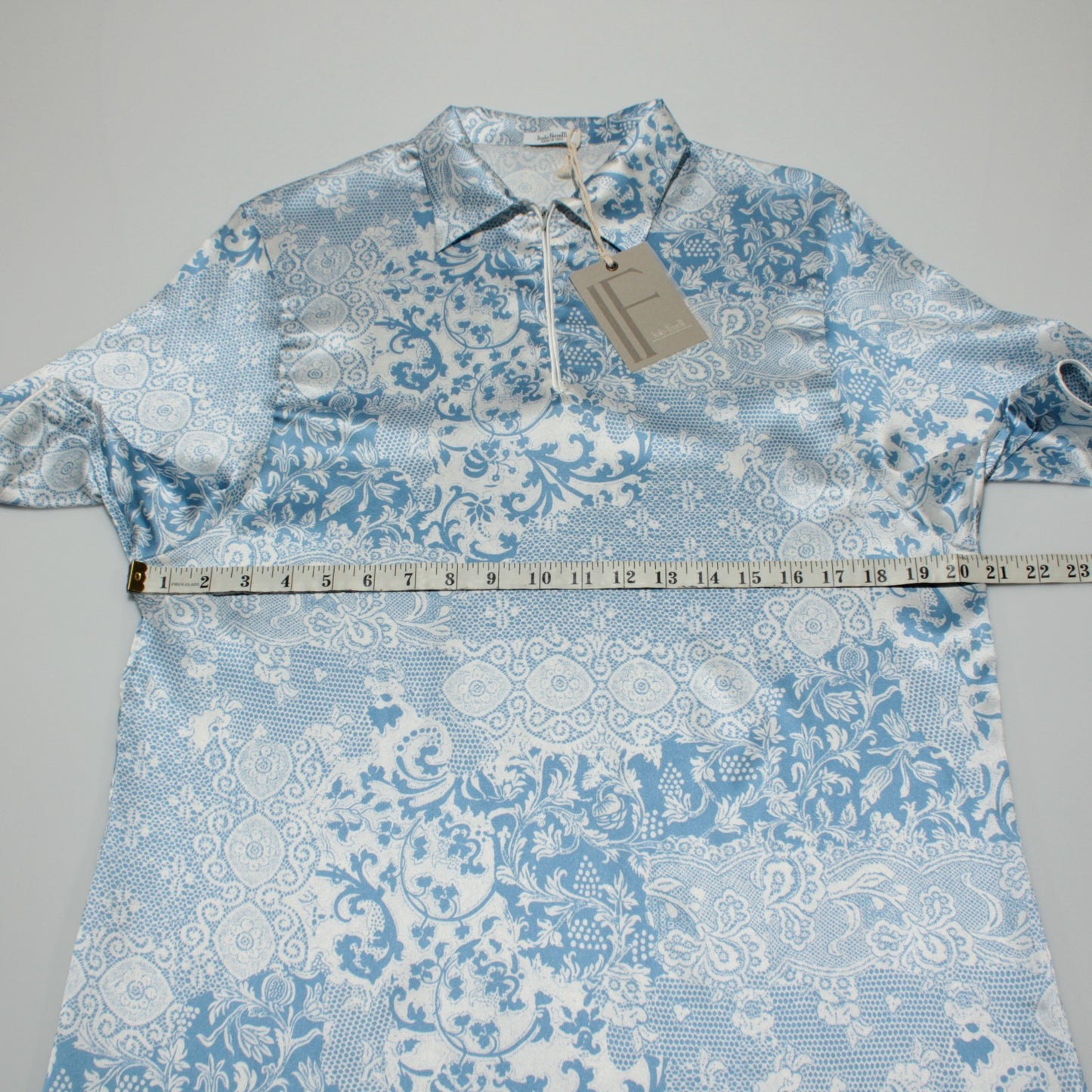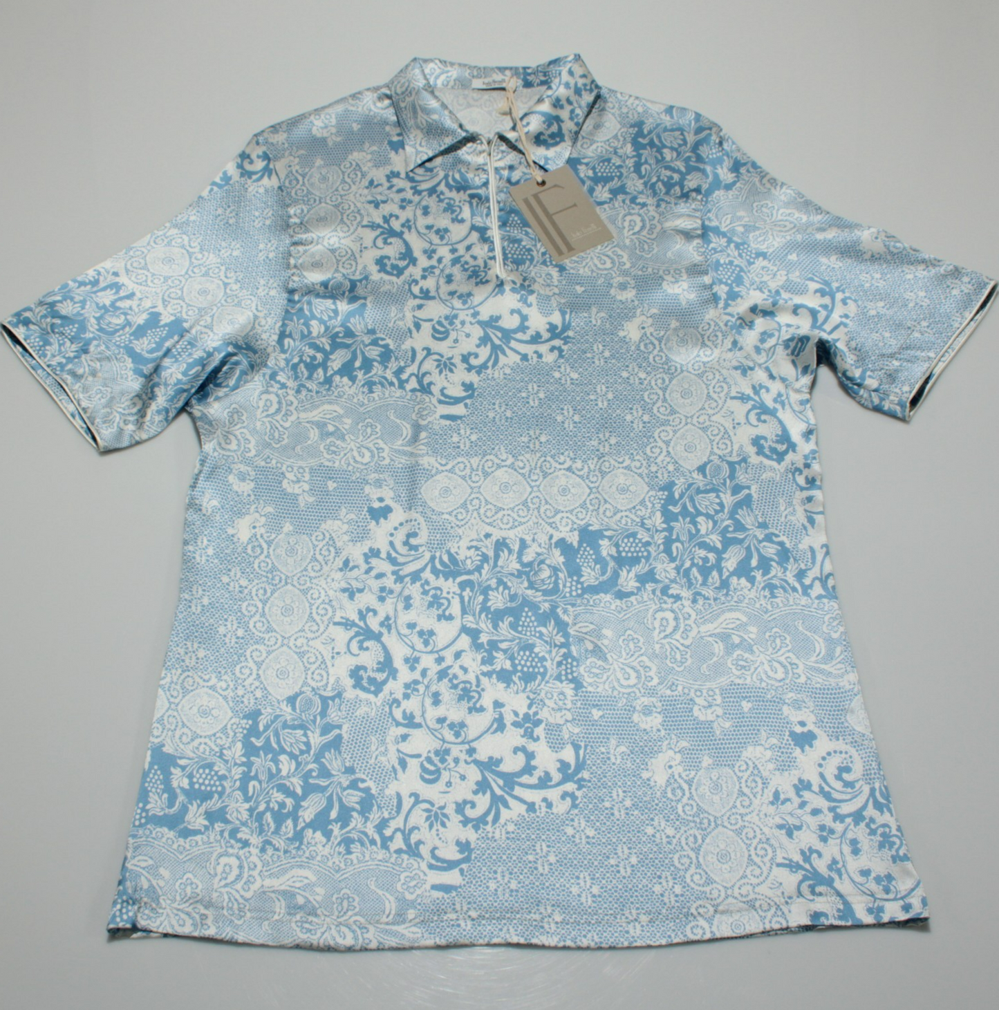 Italo Ferretti NWT Short Sleeve 1/4 Zip Polo Size L in Blue & White Silk Blend