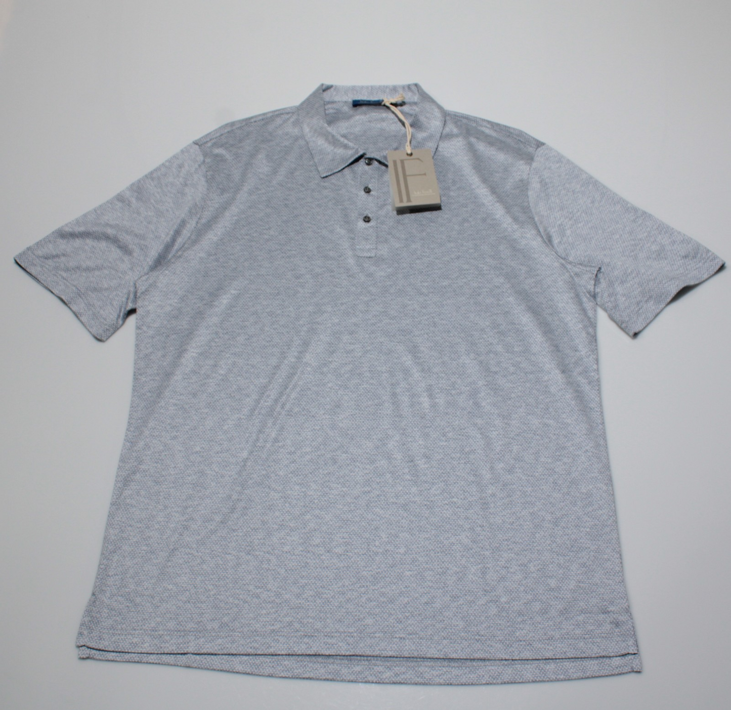 Italo Ferretti NWT Short Sleeve Polo Shirt Size L in Blue Melange 100% Cotton