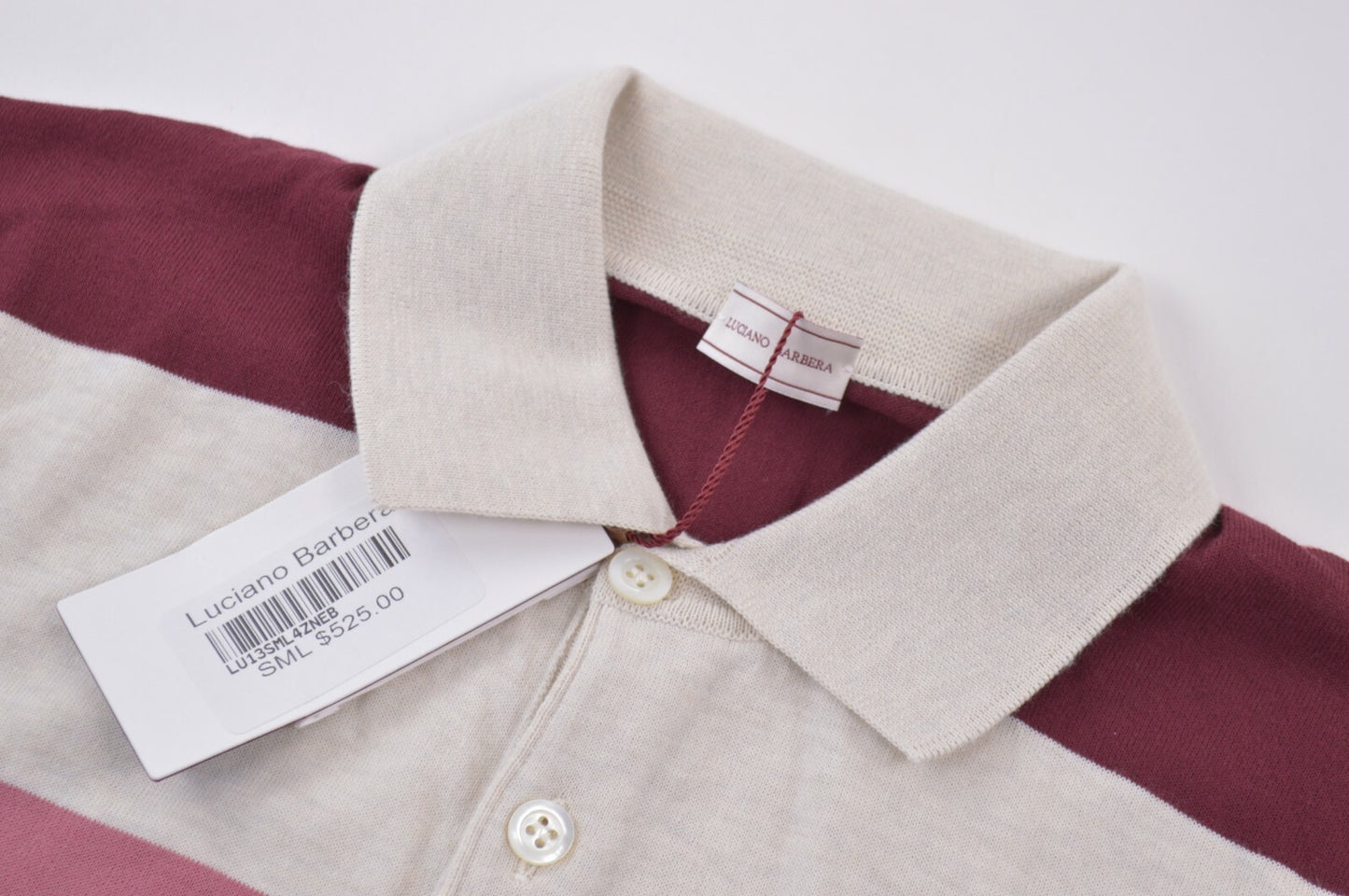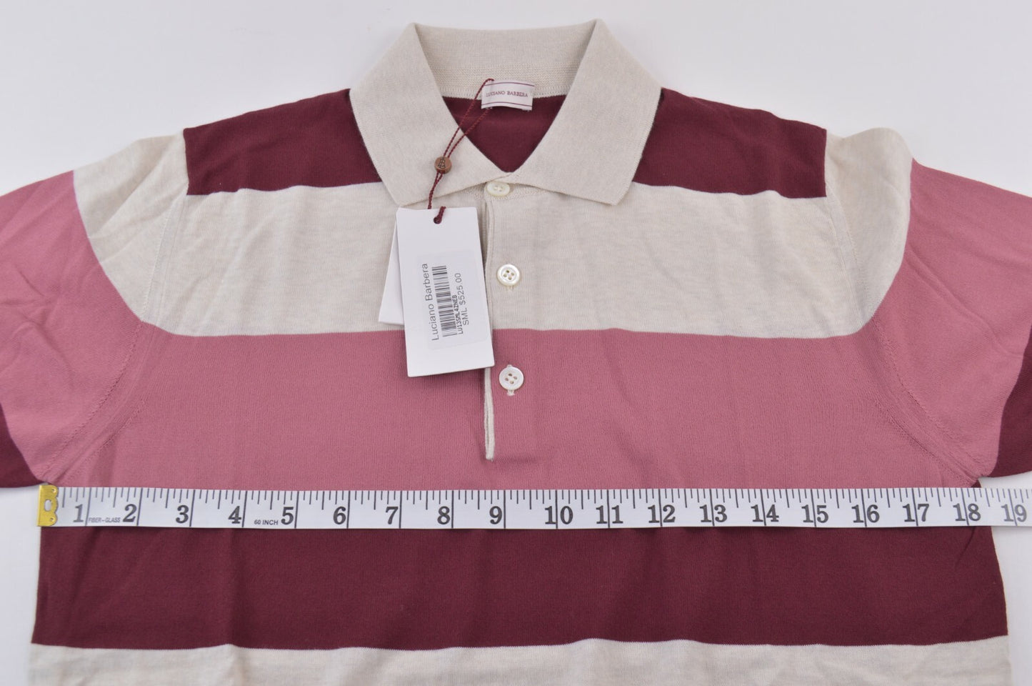 Luciano Barbera NWT Knit Polo Shirt Size 38 US S Cream Pink Red Stripe Cotton