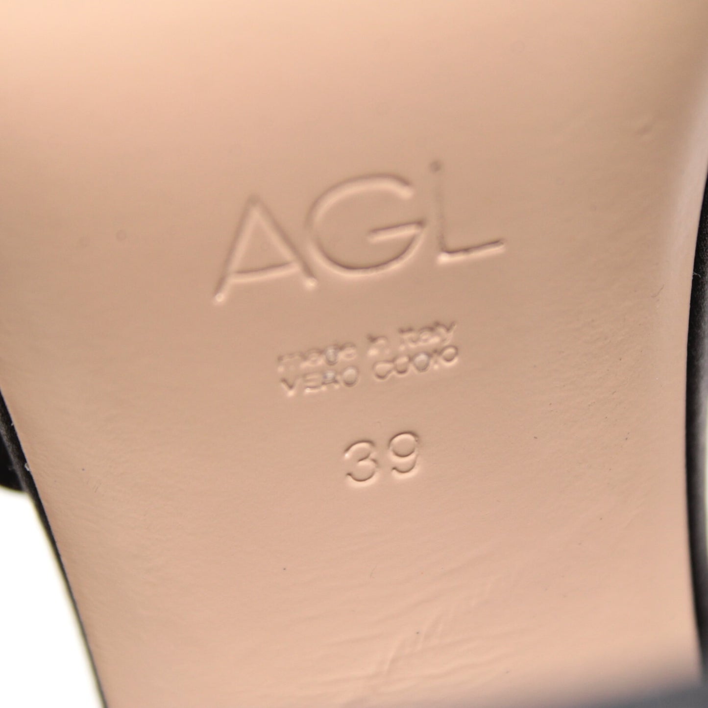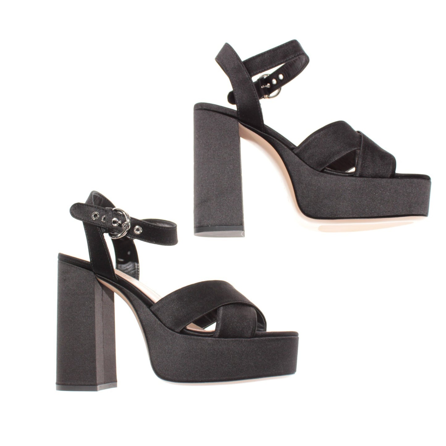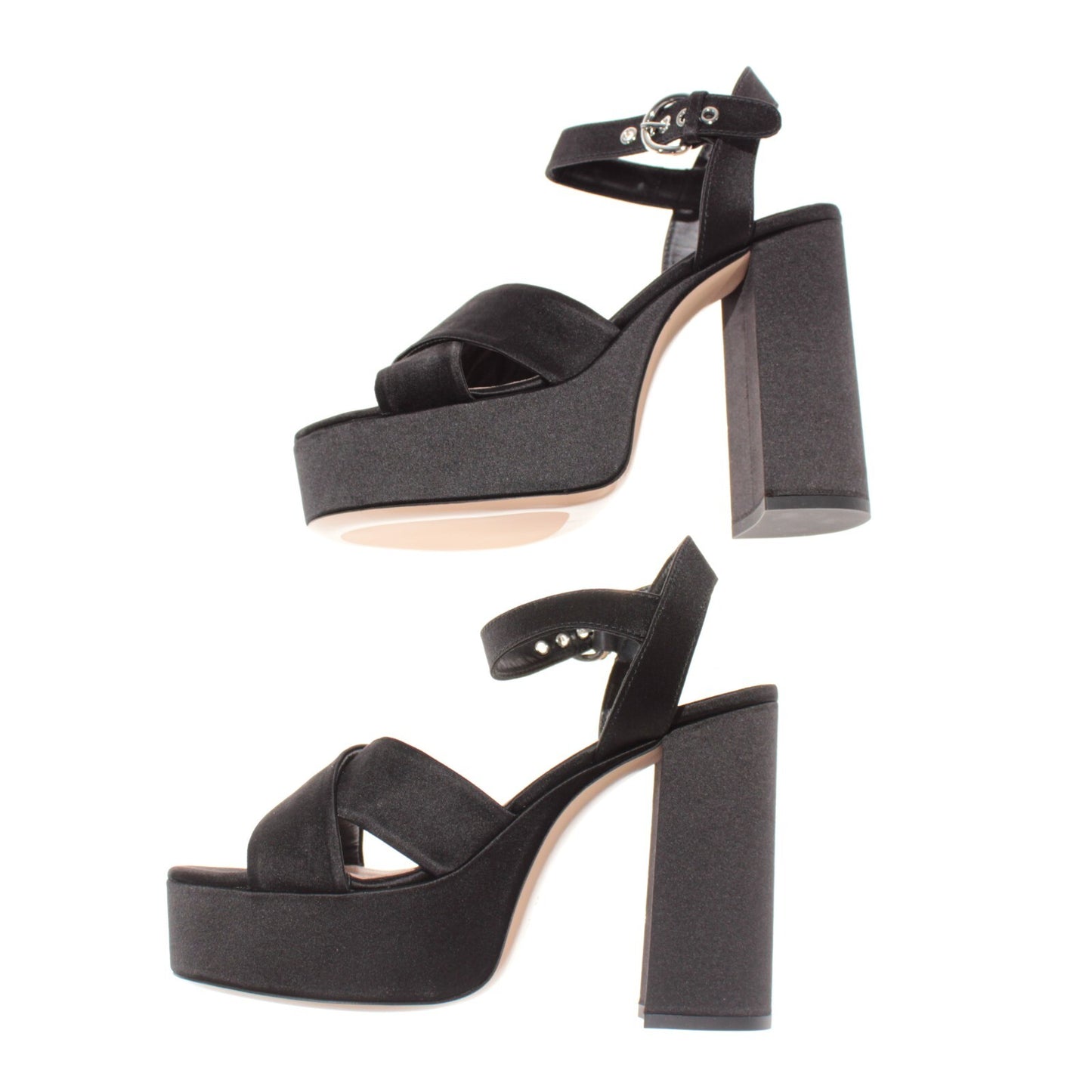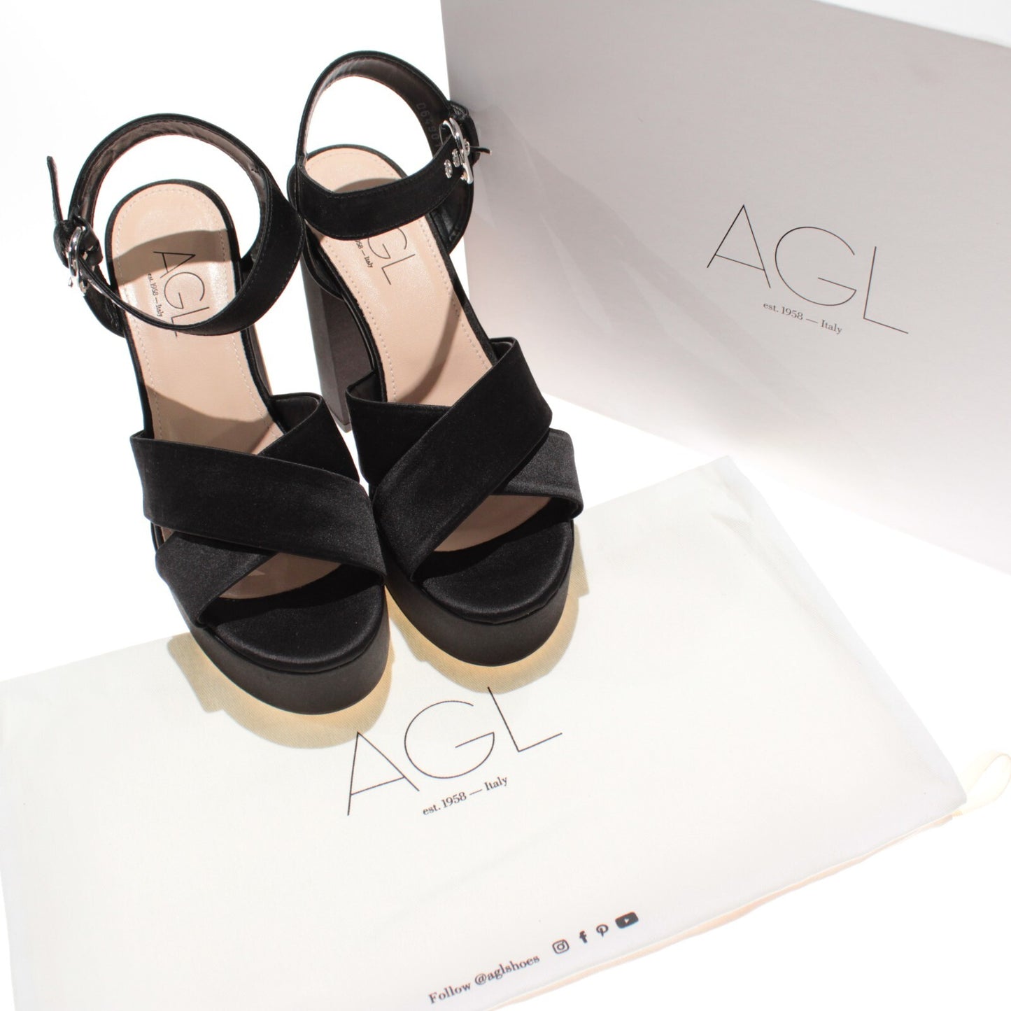 AGL NWB Pam Platform Block Heeled Sandals Size 39 US 9 in Black Satin