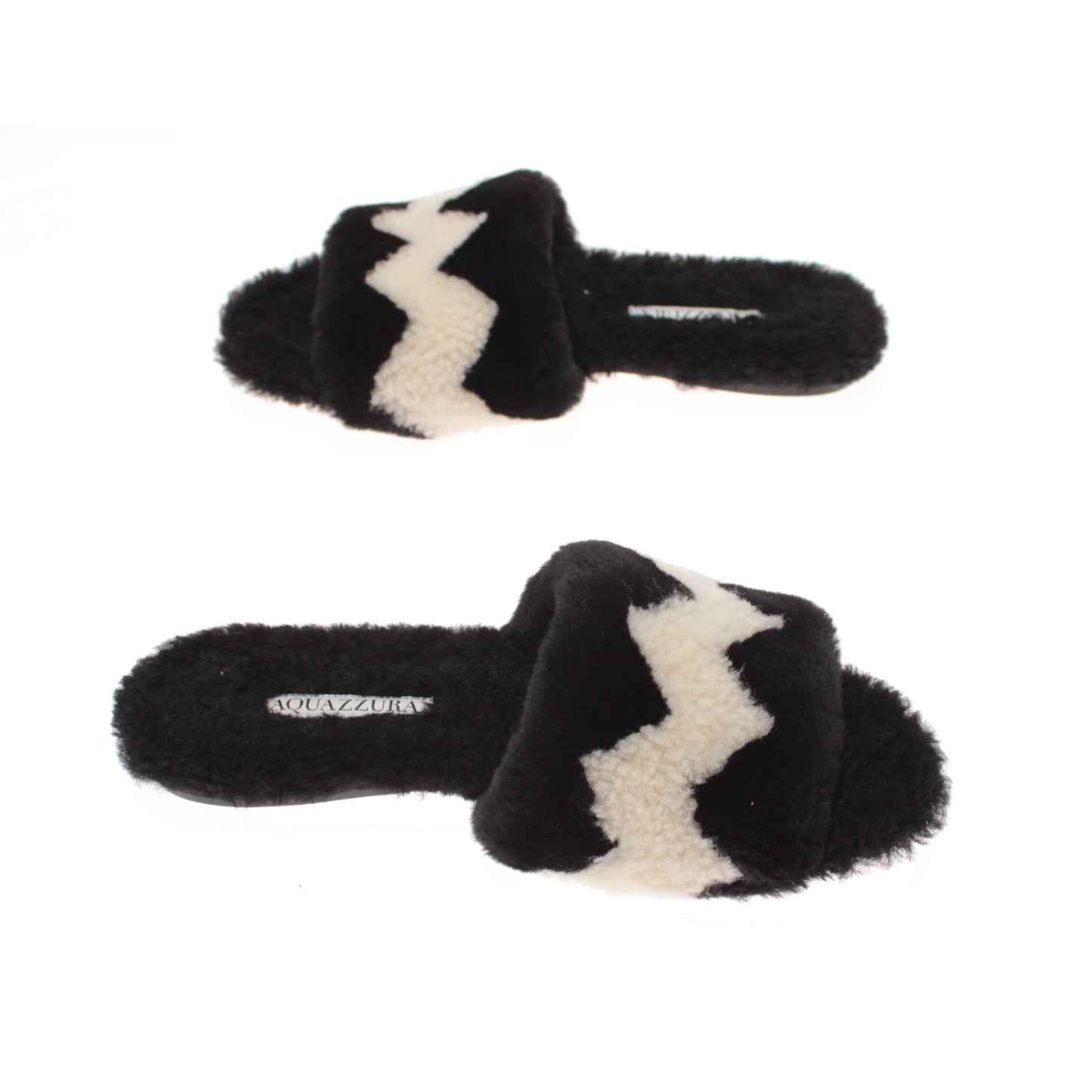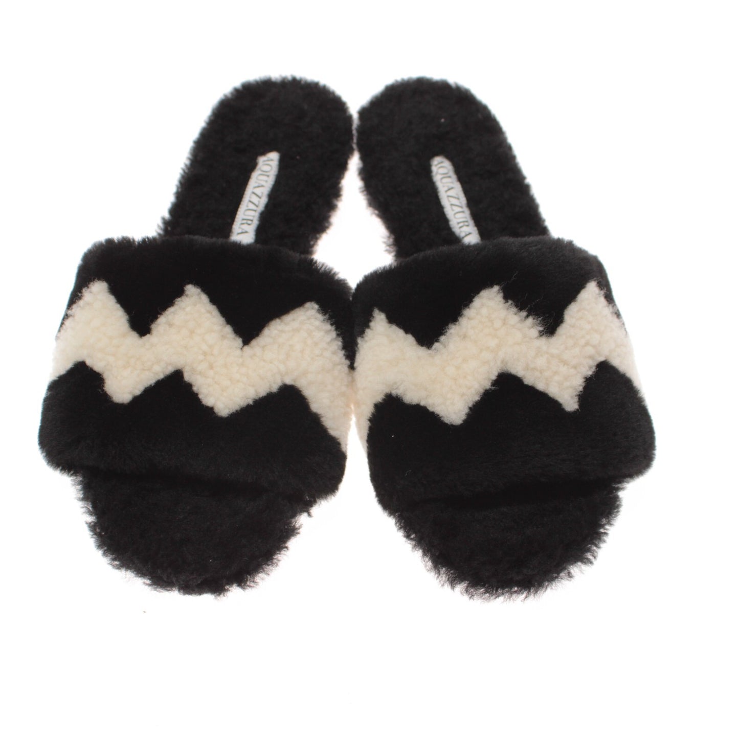 Aquazzura NWB Sandals Size 37 7 US In Black / Cream Shearling