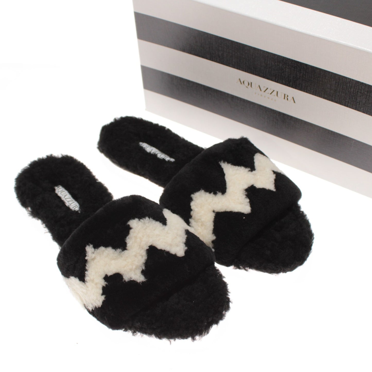 Aquazzura NWB Sandals Size 41 11 US In Black / Cream Shearling