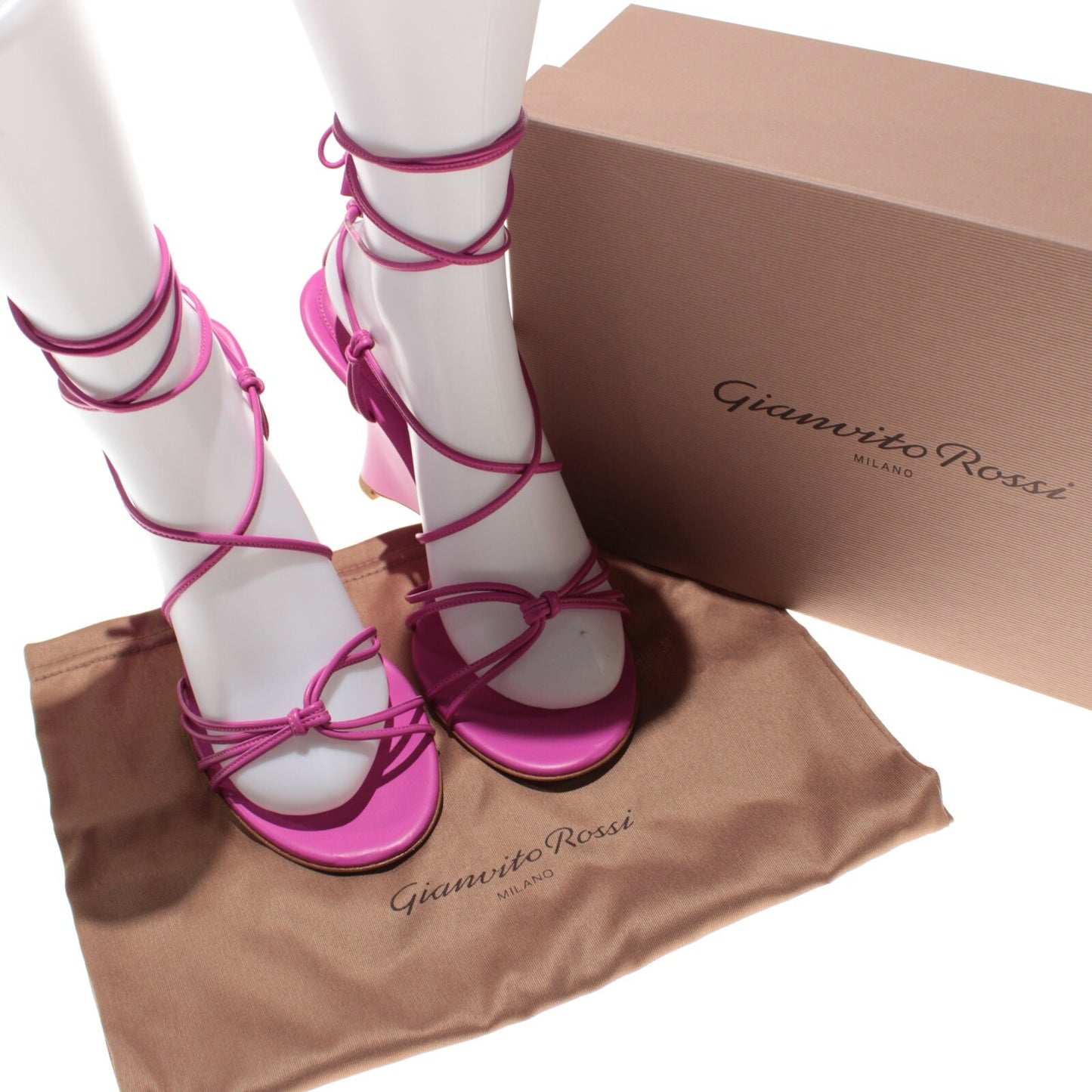 Gianvito Rossi NWB Bloom Lace Up Wedge Leather Sandals Size 37.5 US 7.5 Magenta