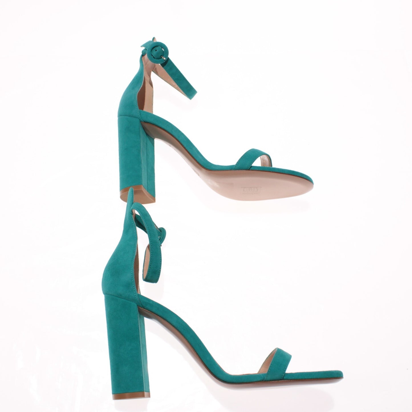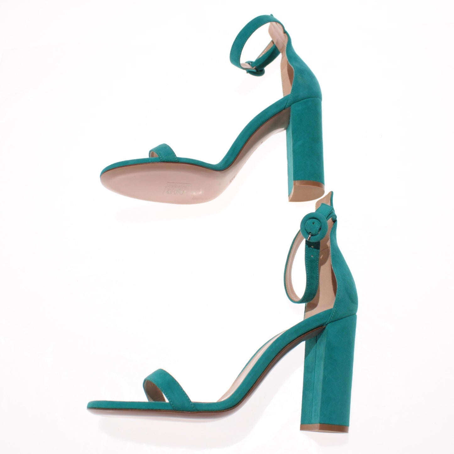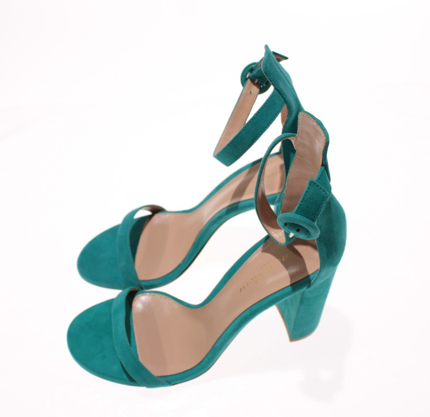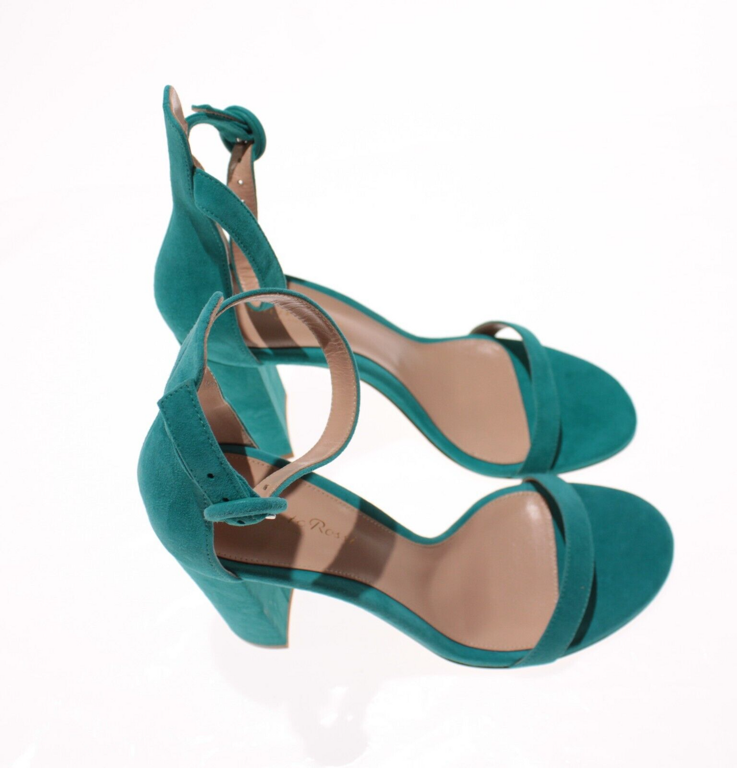 Gianvito Rossi NWB Gaeta Block Heeled Sandals Size 39 (US 9) in Teal Suede