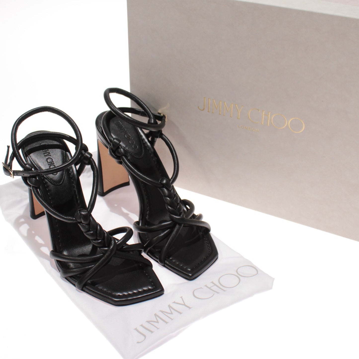 Jimmy Choo NWB Calypso 95 Open Toe Heeled Sandals Size 37 US 7 in Black Leather
