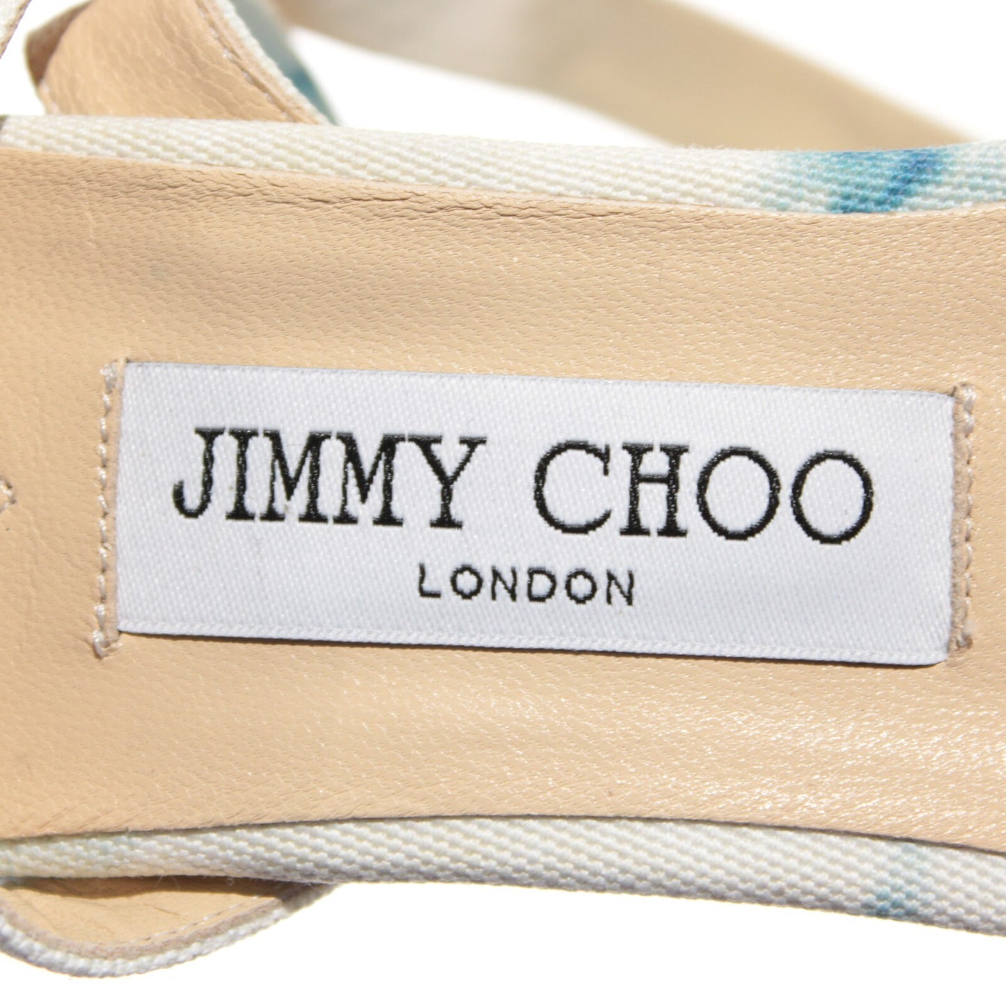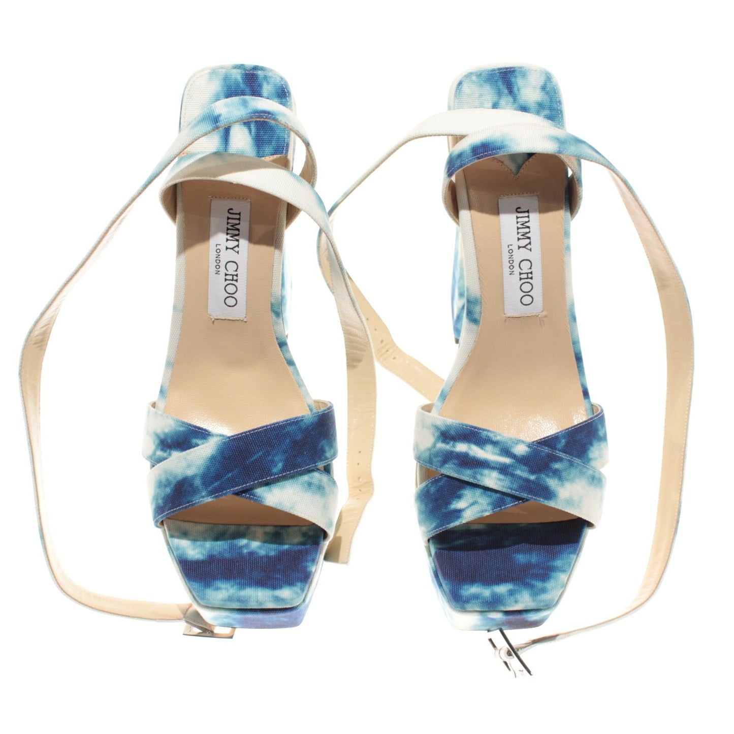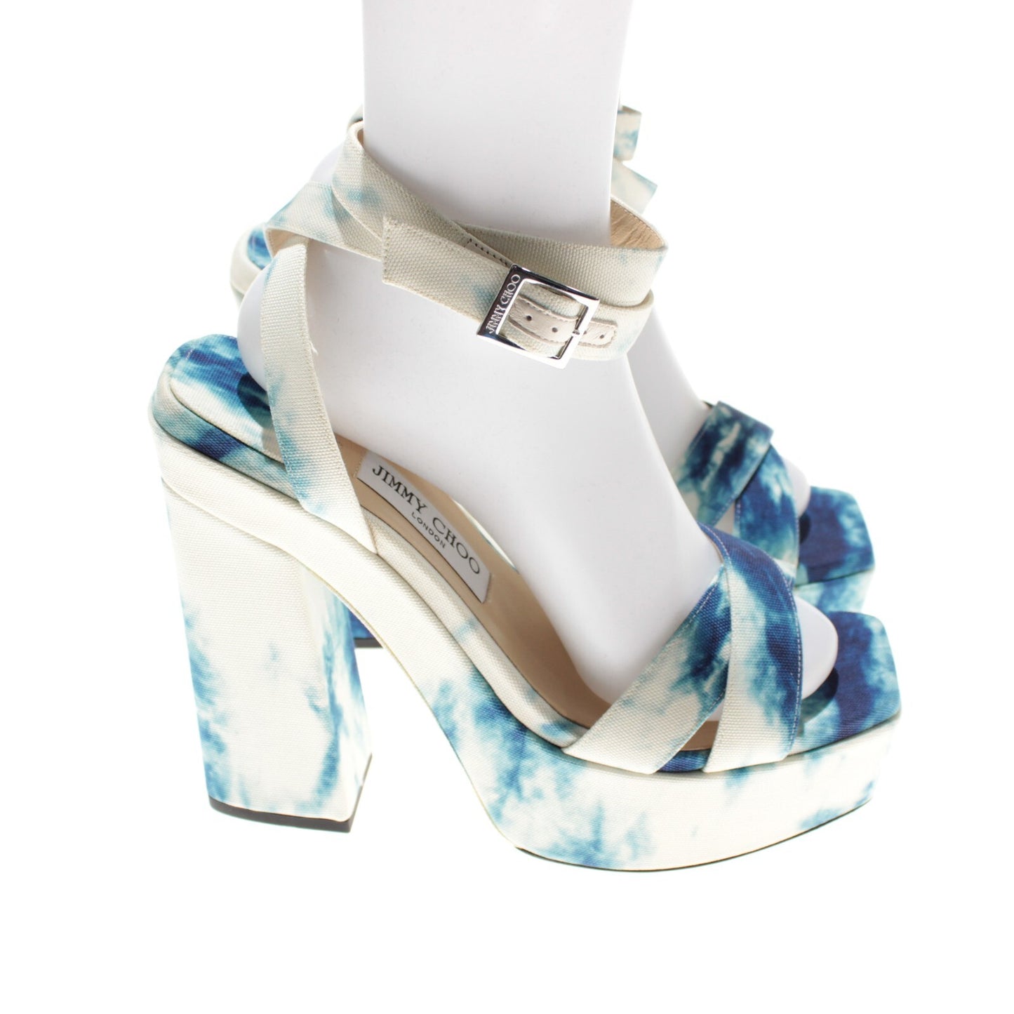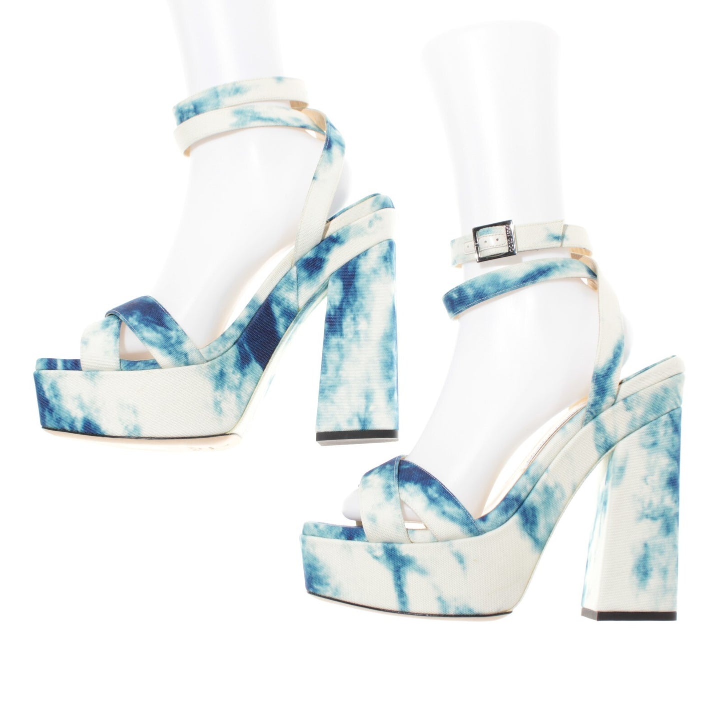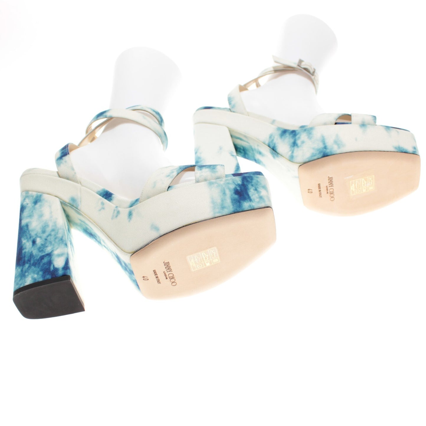 Jimmy Choo NWB Gaia 140 Platform Sandals Size 40 US 10 Latte Mix Marbled Denim