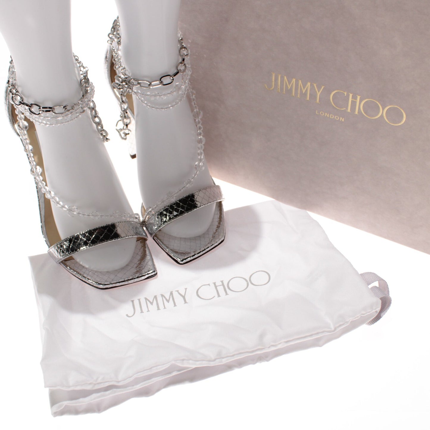 Jimmy Choo NWB Neena 100 Wrap Heels w/ Chains & Crystals Size 37 US 7 in Silver