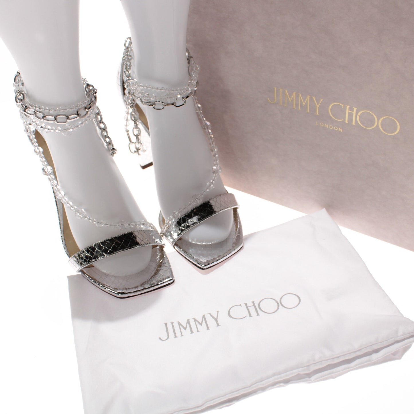 Jimmy Choo NWB Neena 100 Wrap Heels w/ Chains & Crystals Size 38 US 8 in Silver