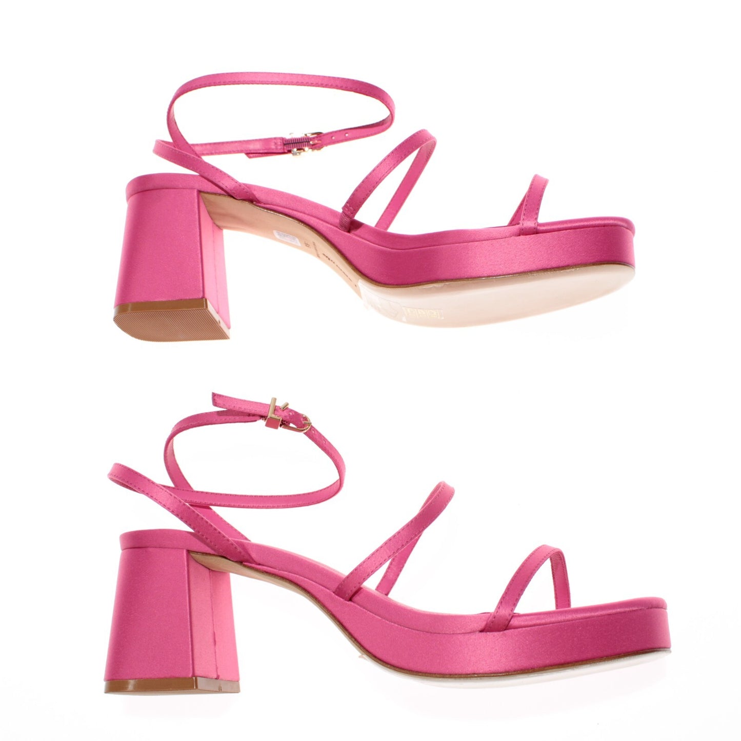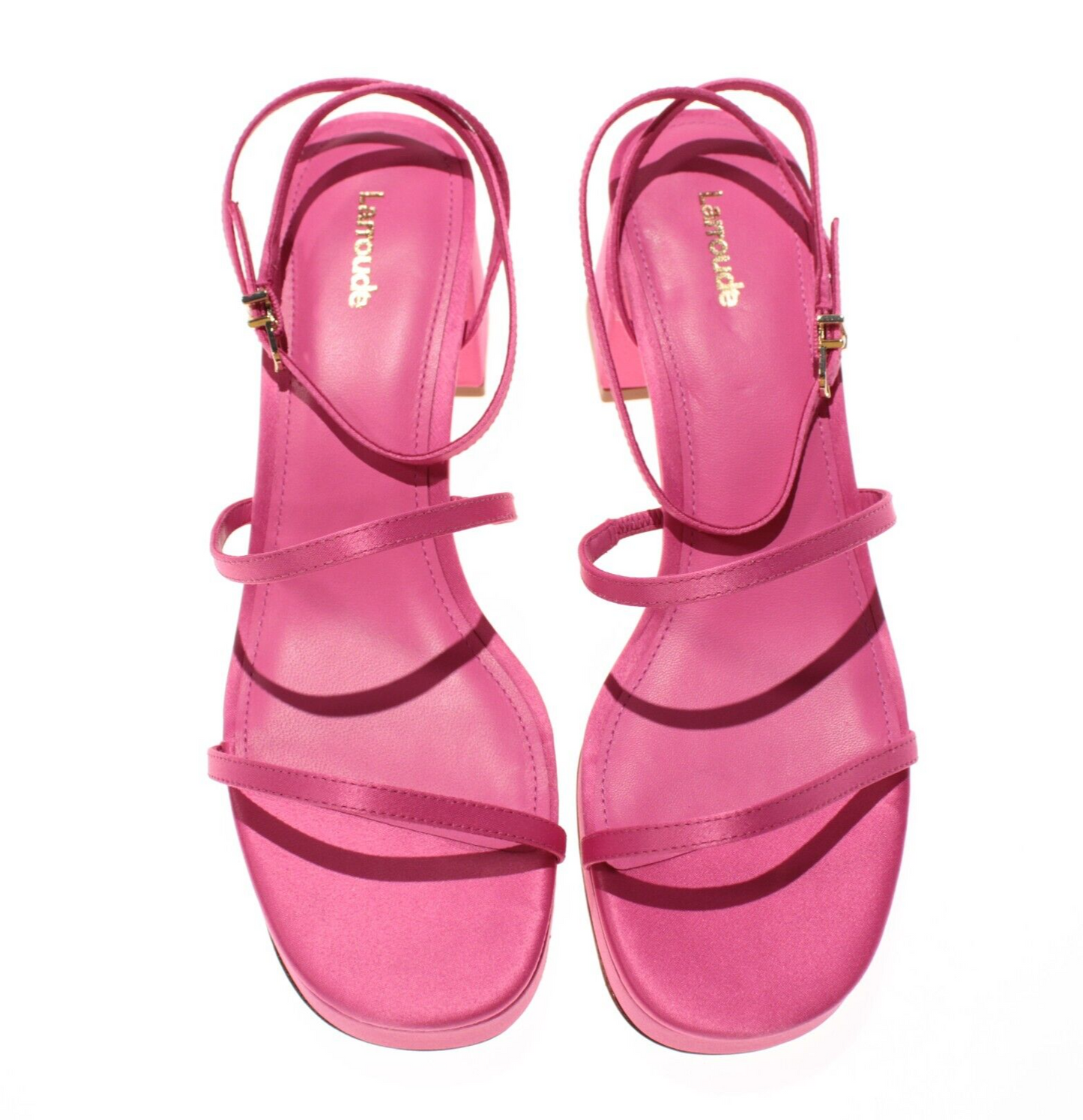 Larroude NWB Gio Chunky Strappy Block Heel Sandals Size 9.5 in Satin Deluxe Pink
