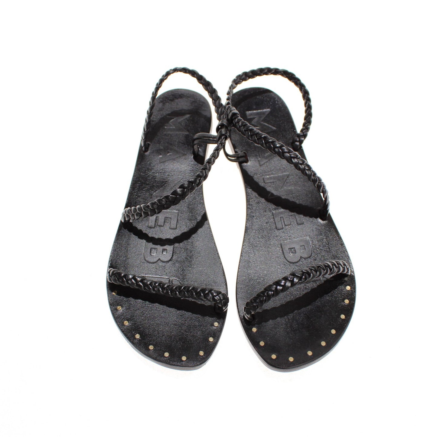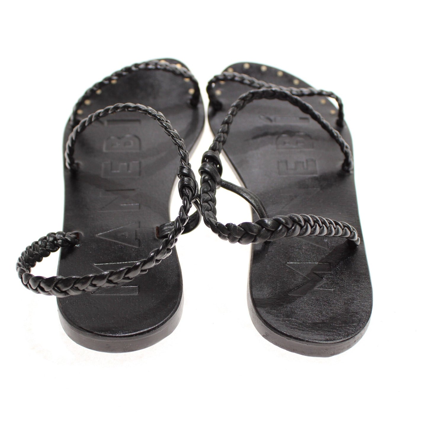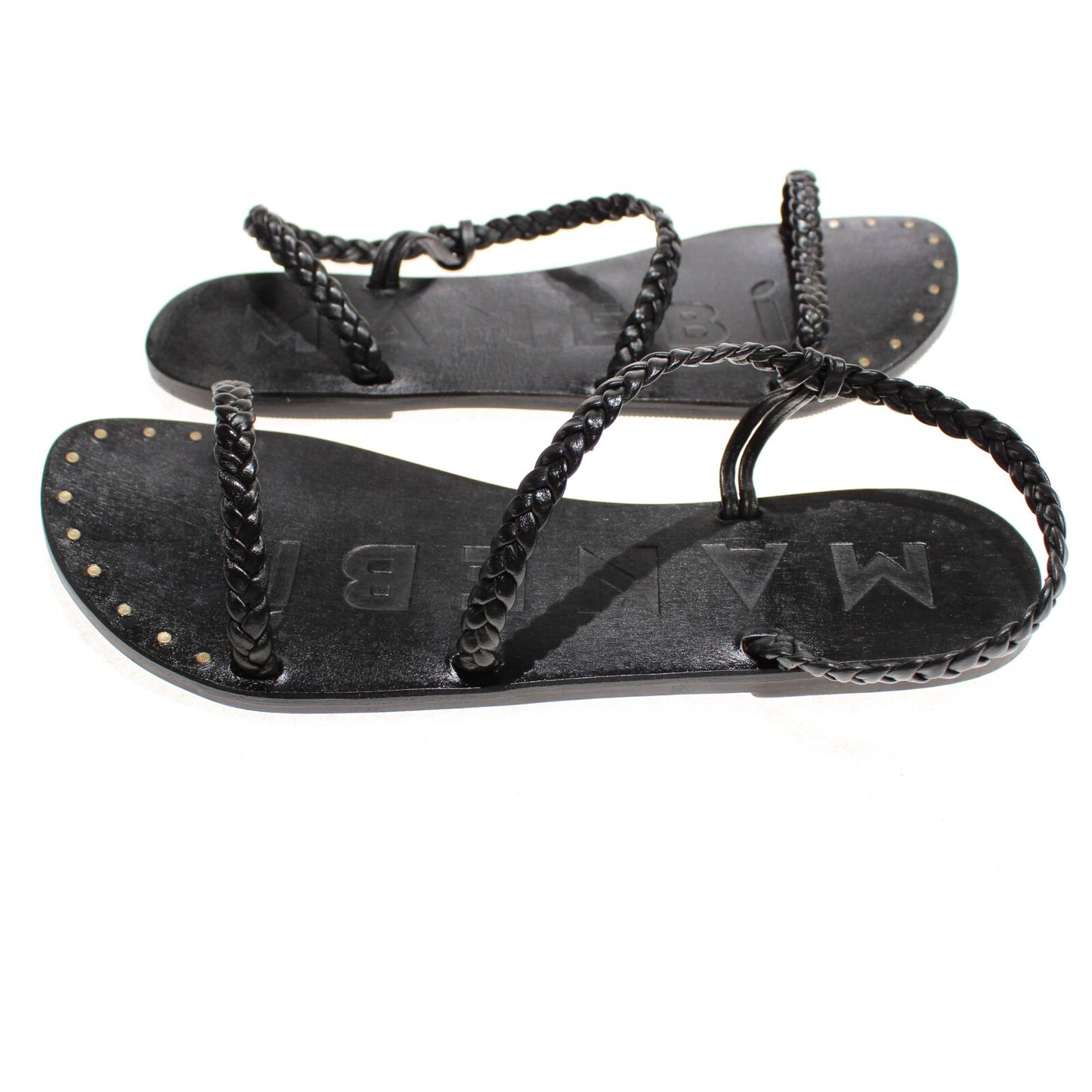Manebi NWB Braided Leather Flat Sandals Size 38 US 8 in Solid Black