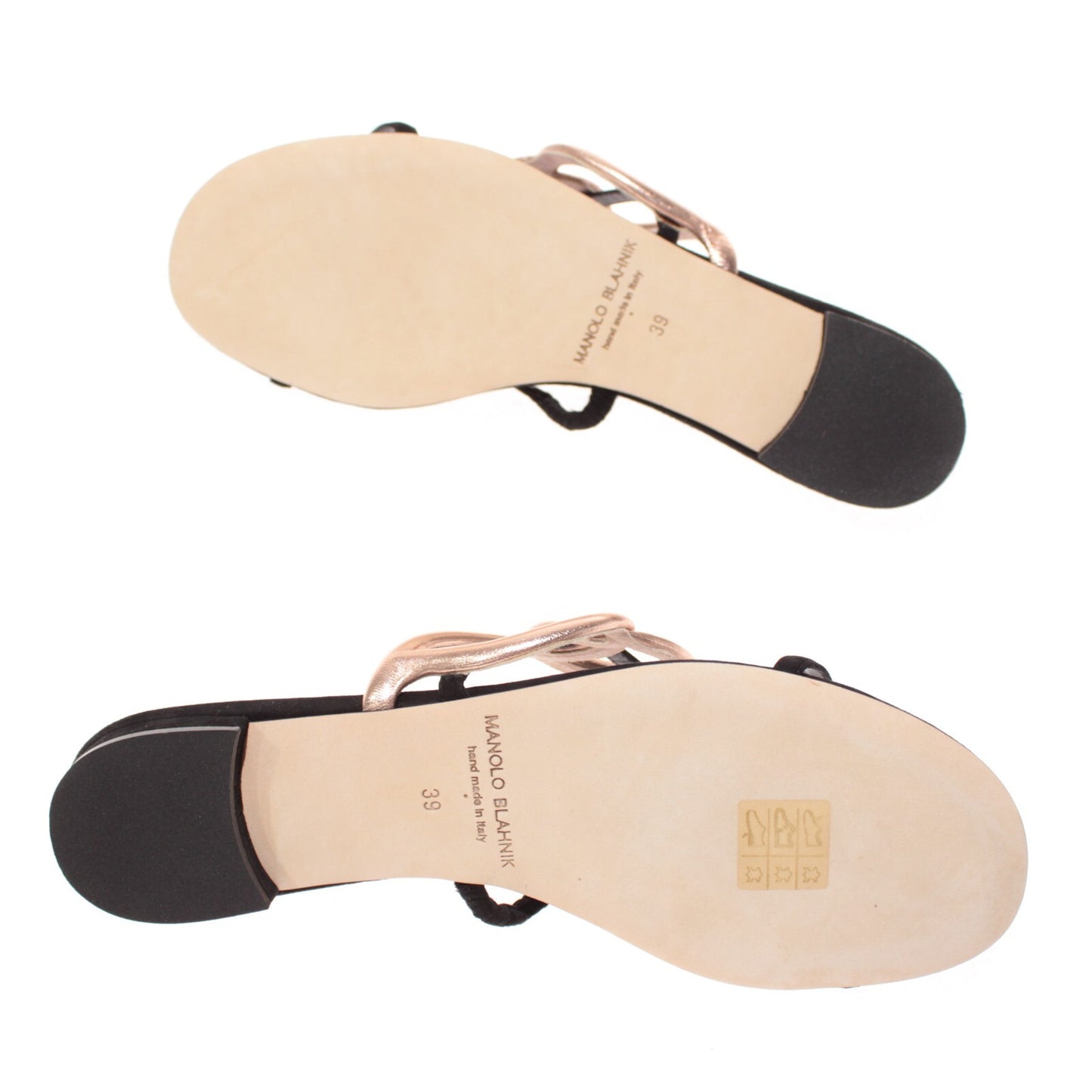 Manolo Blahnik NWB Sandals Size 39 9 US In Black With Rose Gold Piedad