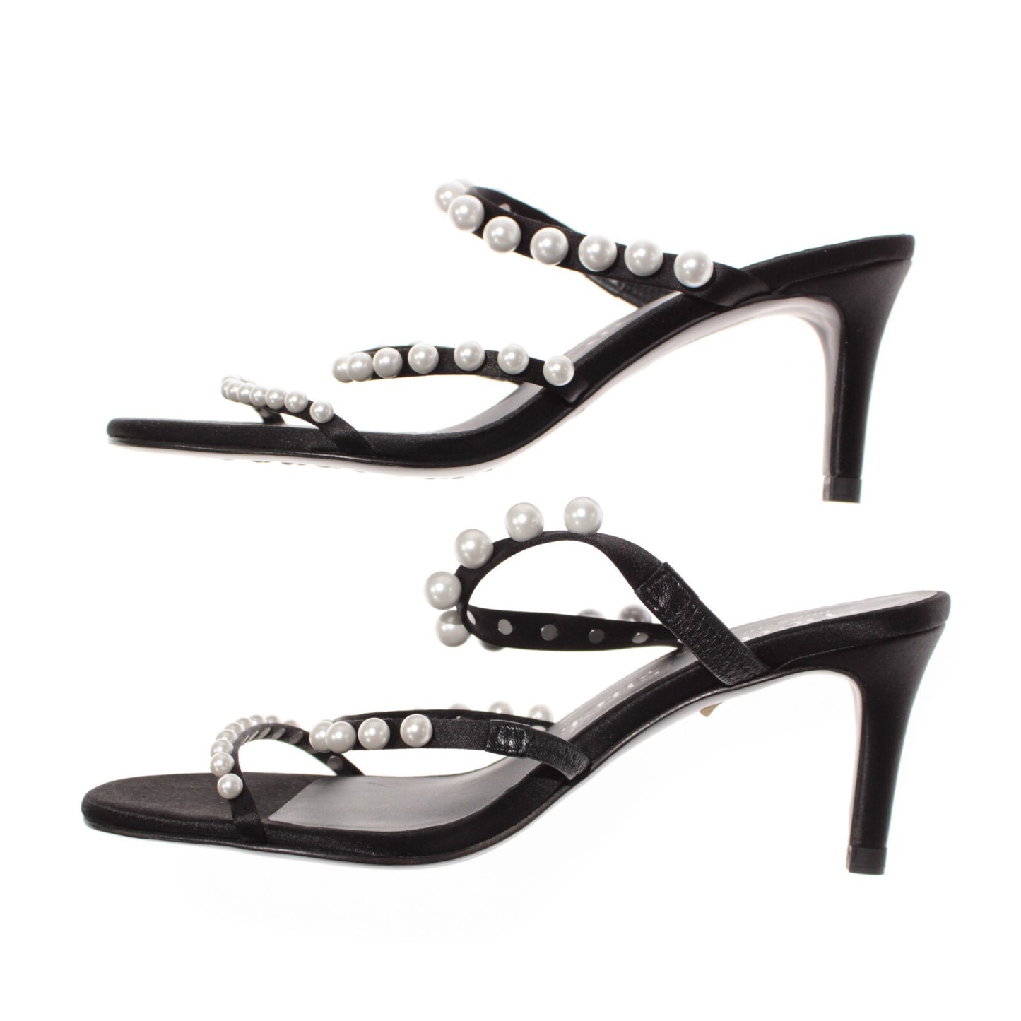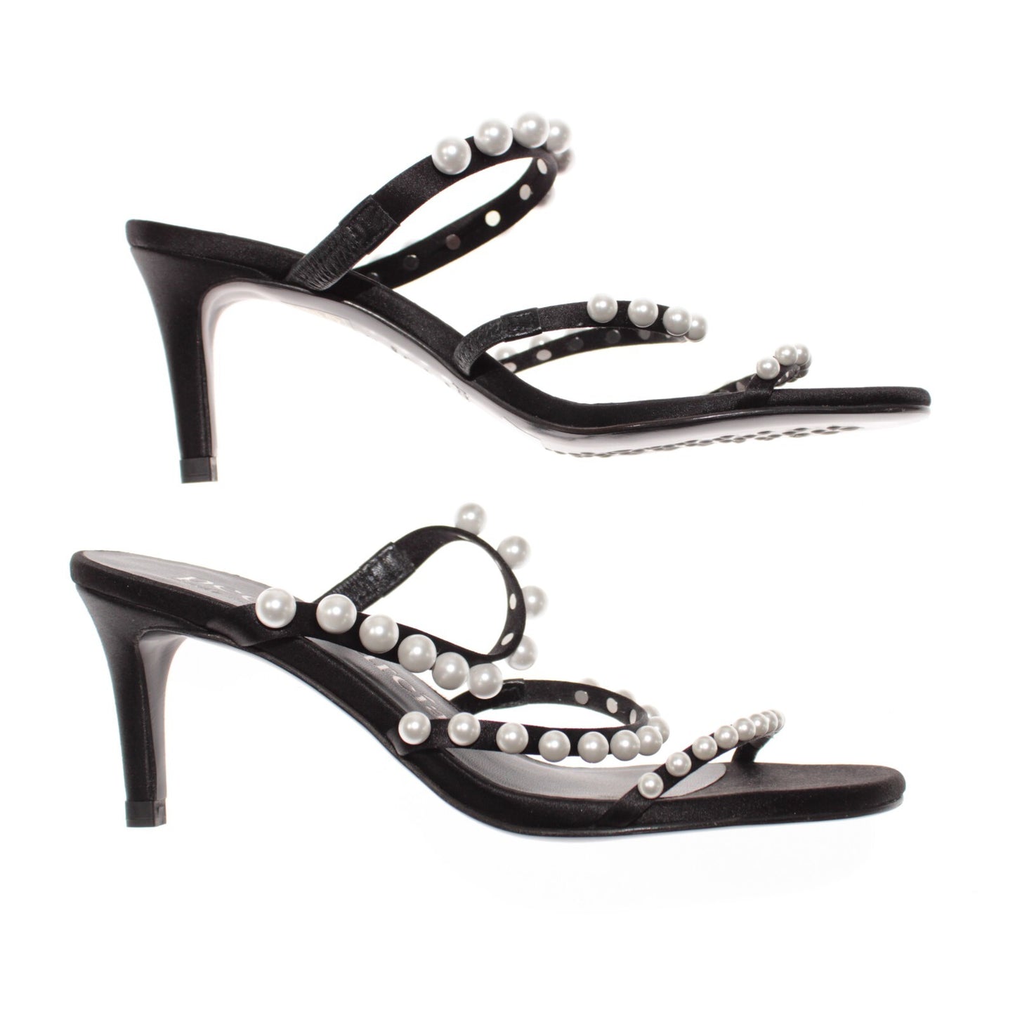Pedro Garcia NWB Xeeba Strappy Pearl Heeled Sandals Size 36 US 6 in Black Satin