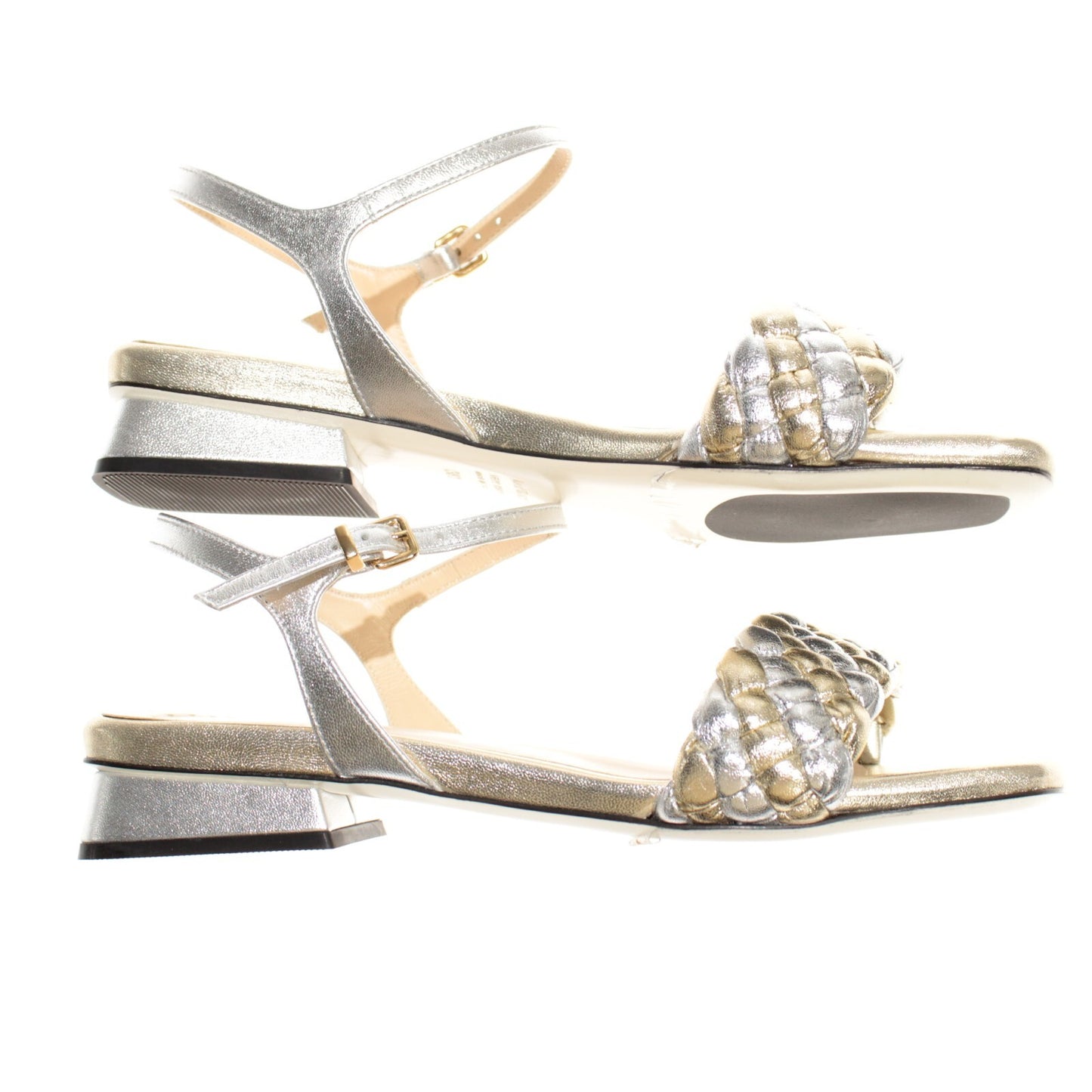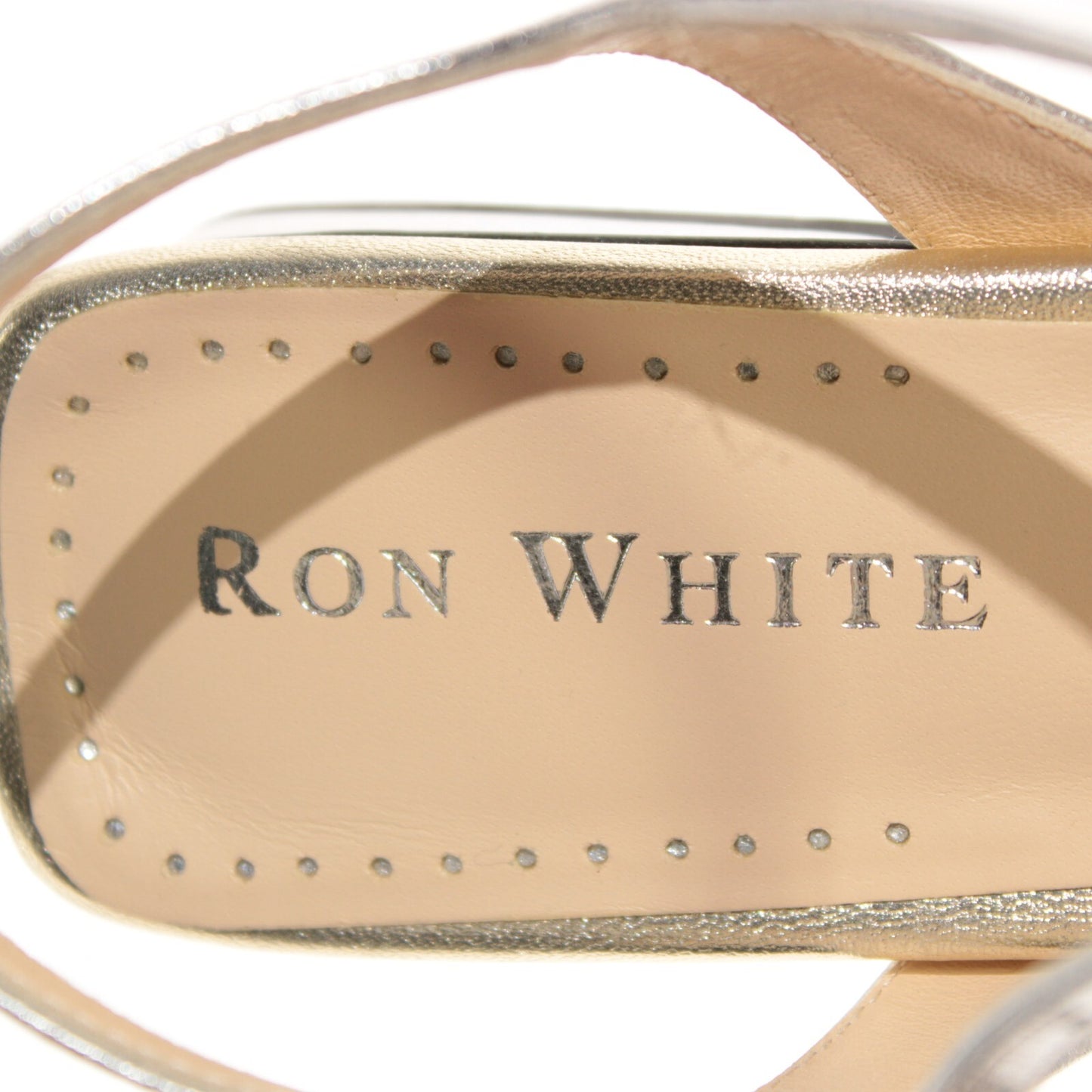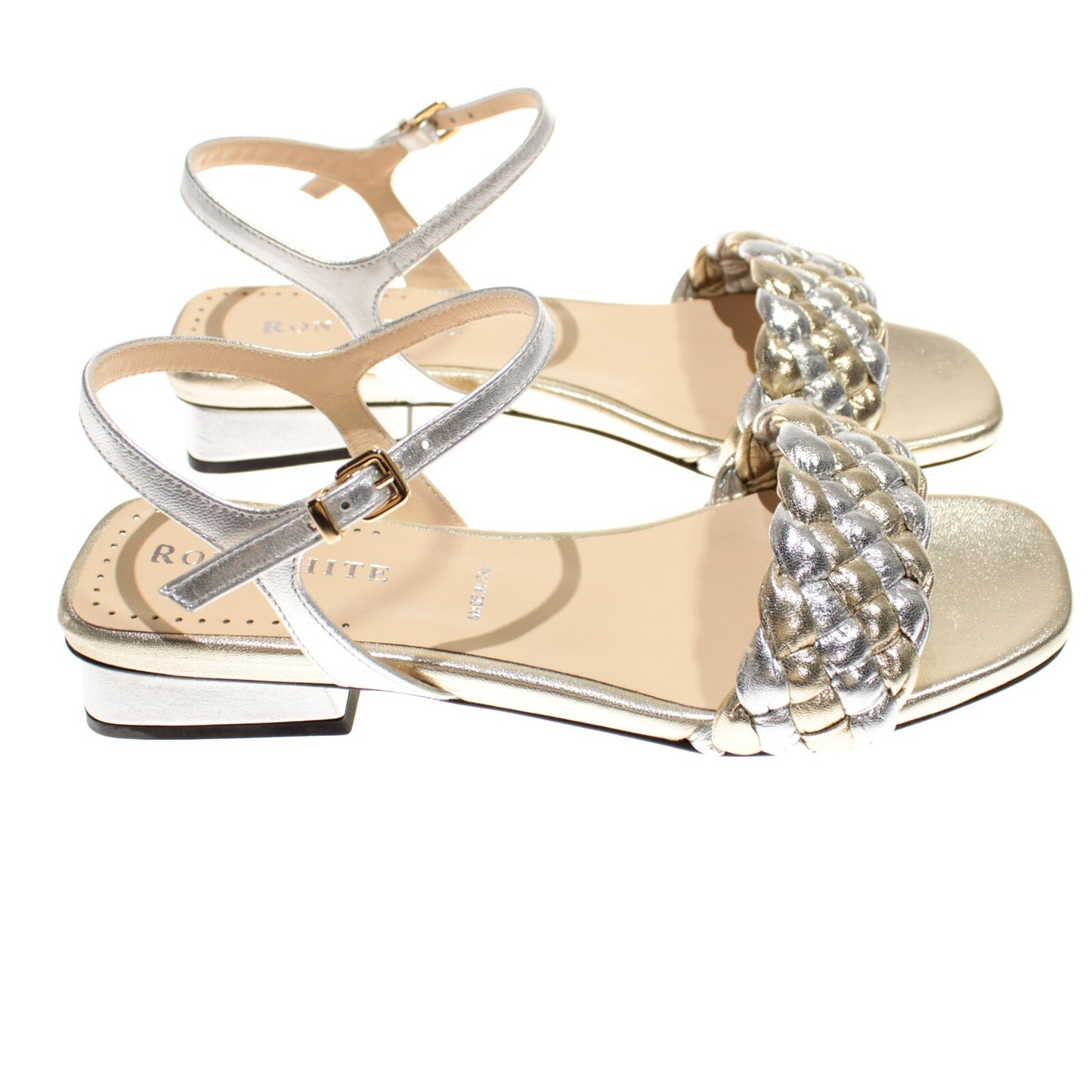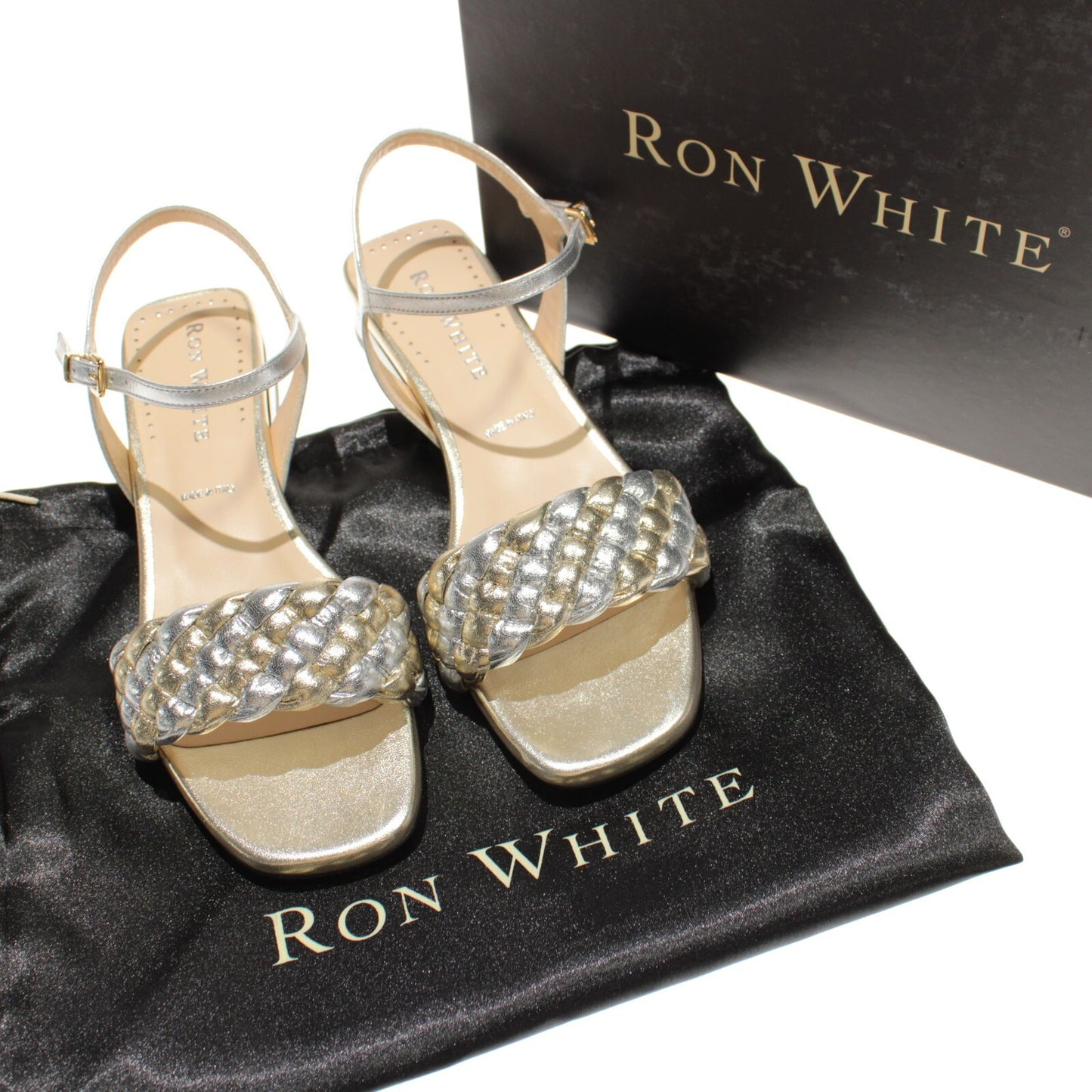 Ron White NWB Barbra Sandals Size 38.5/8 US in Metallic Silver/Gold Leather