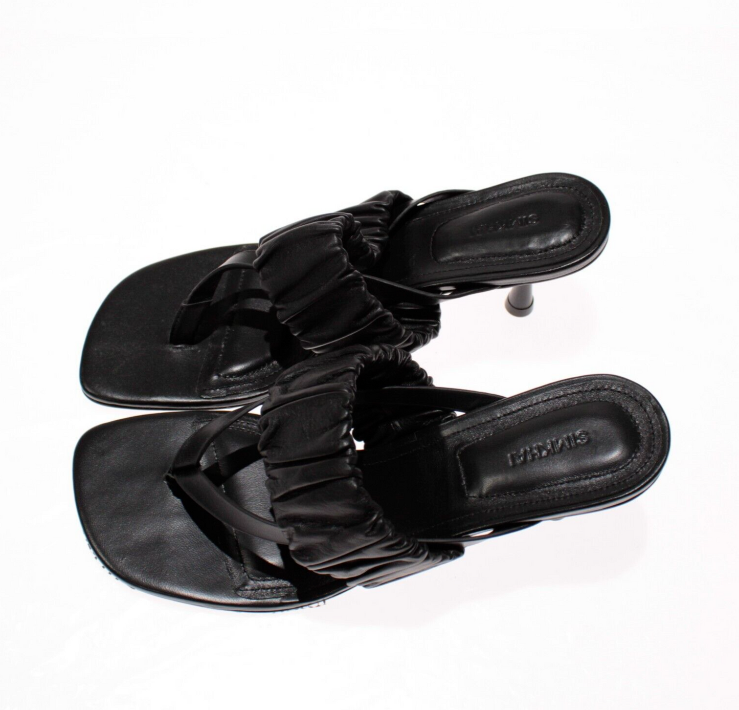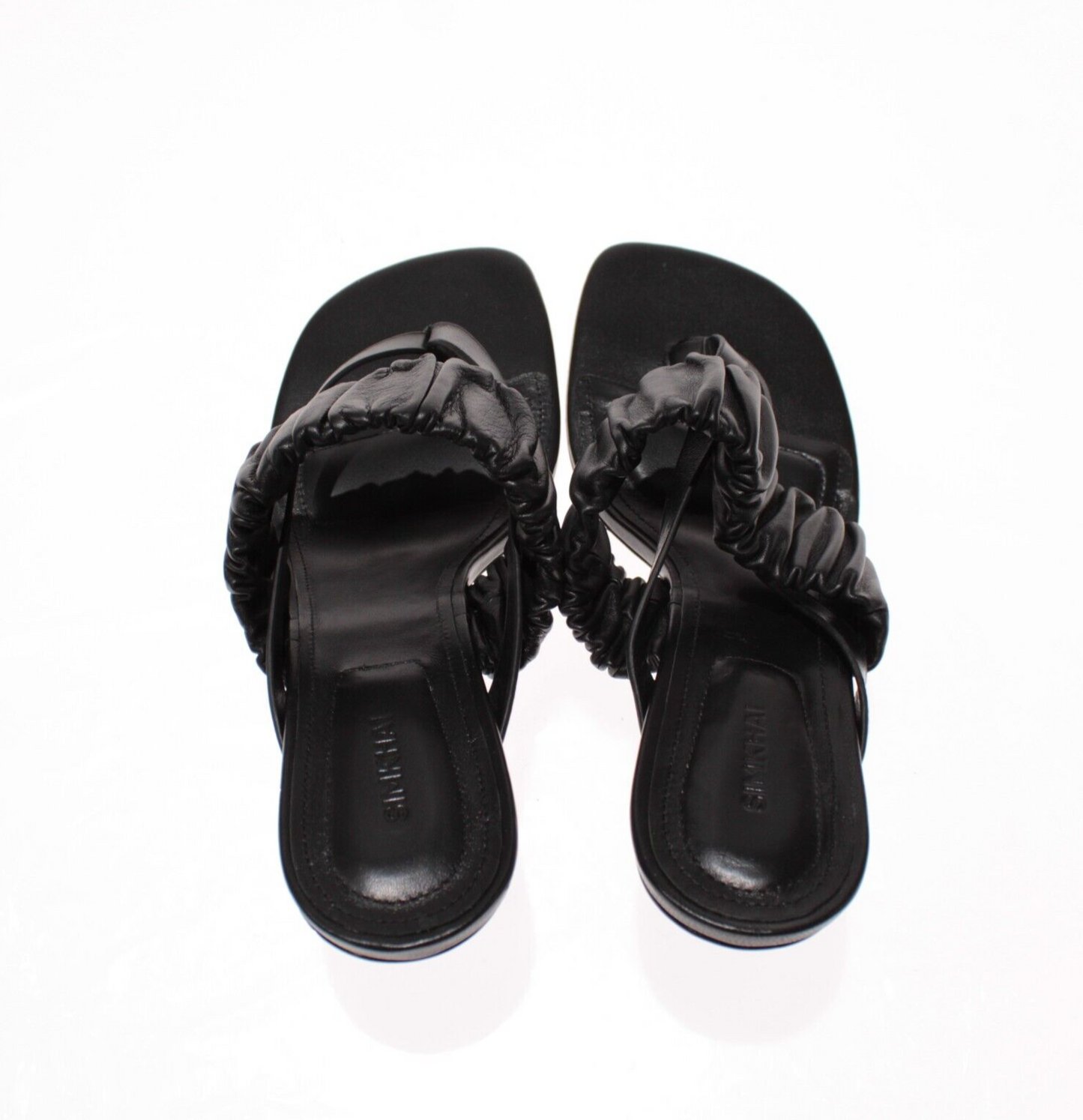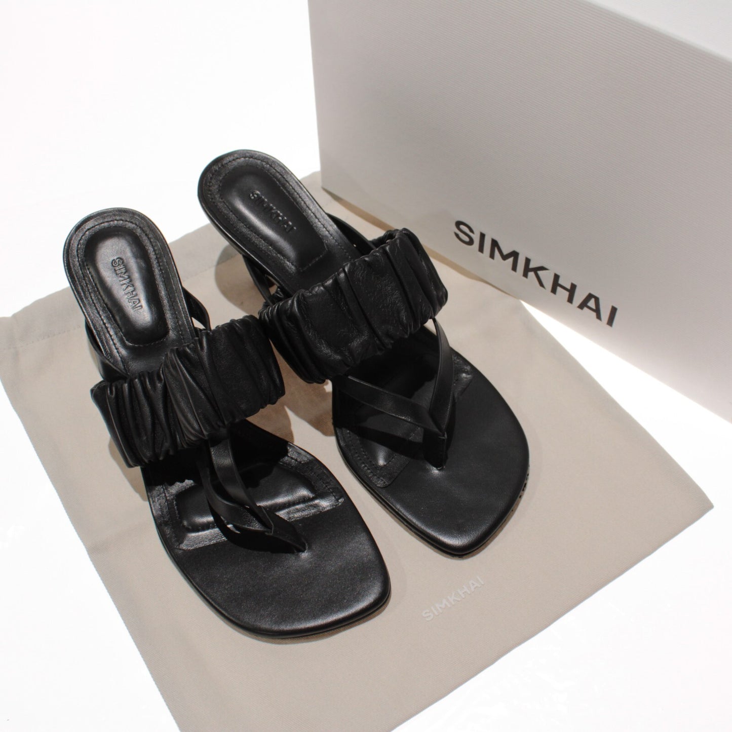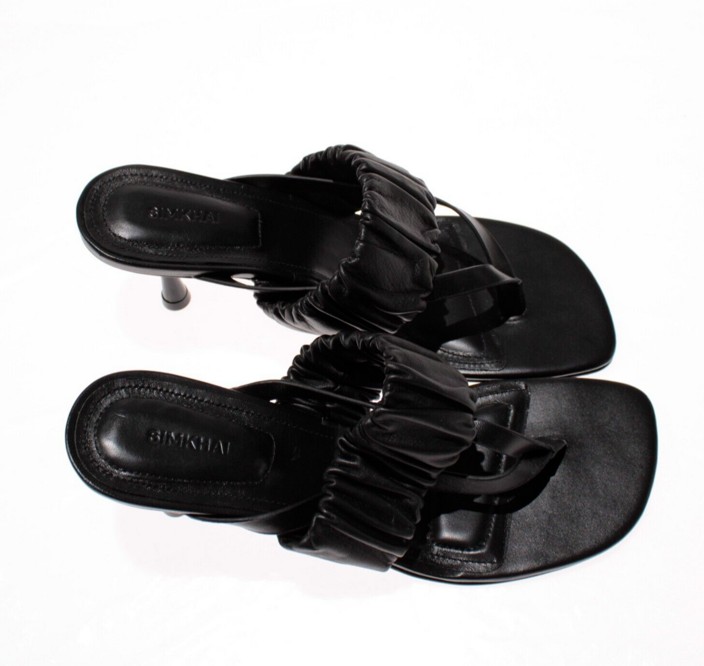 Simkhai NWB Tamar Ruched Elastic Heeled Sandals Size 38 (US 8) in Solid Black