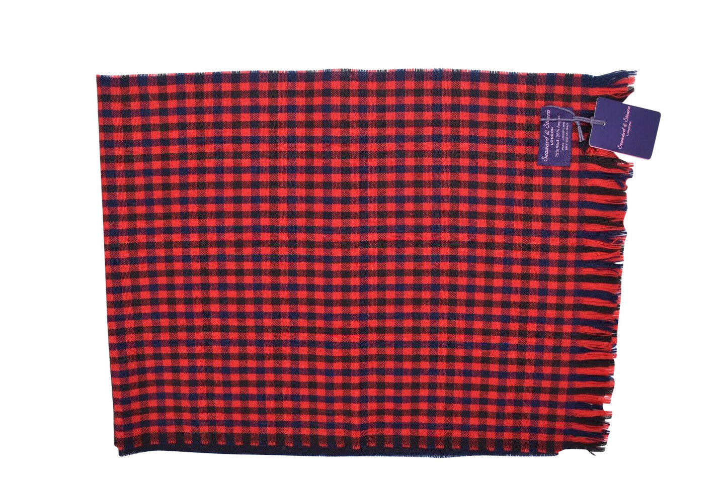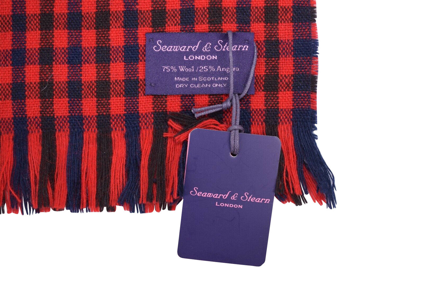 Seaward & Stearn NWT Wool & Angora Scarf In Blue Red & Black Stripes & Plaid