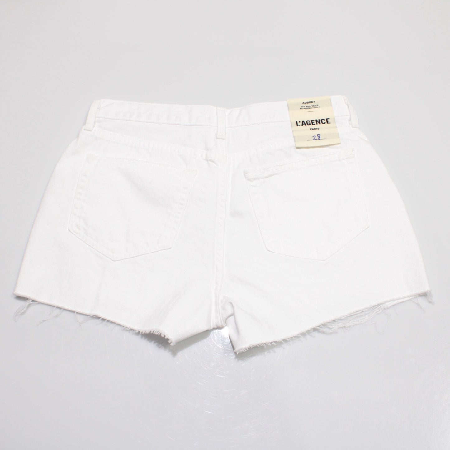 L'Agence NWT Jean Cut Shorts Size 28 US Audrey Mide Rise Solid White 100% Cotton