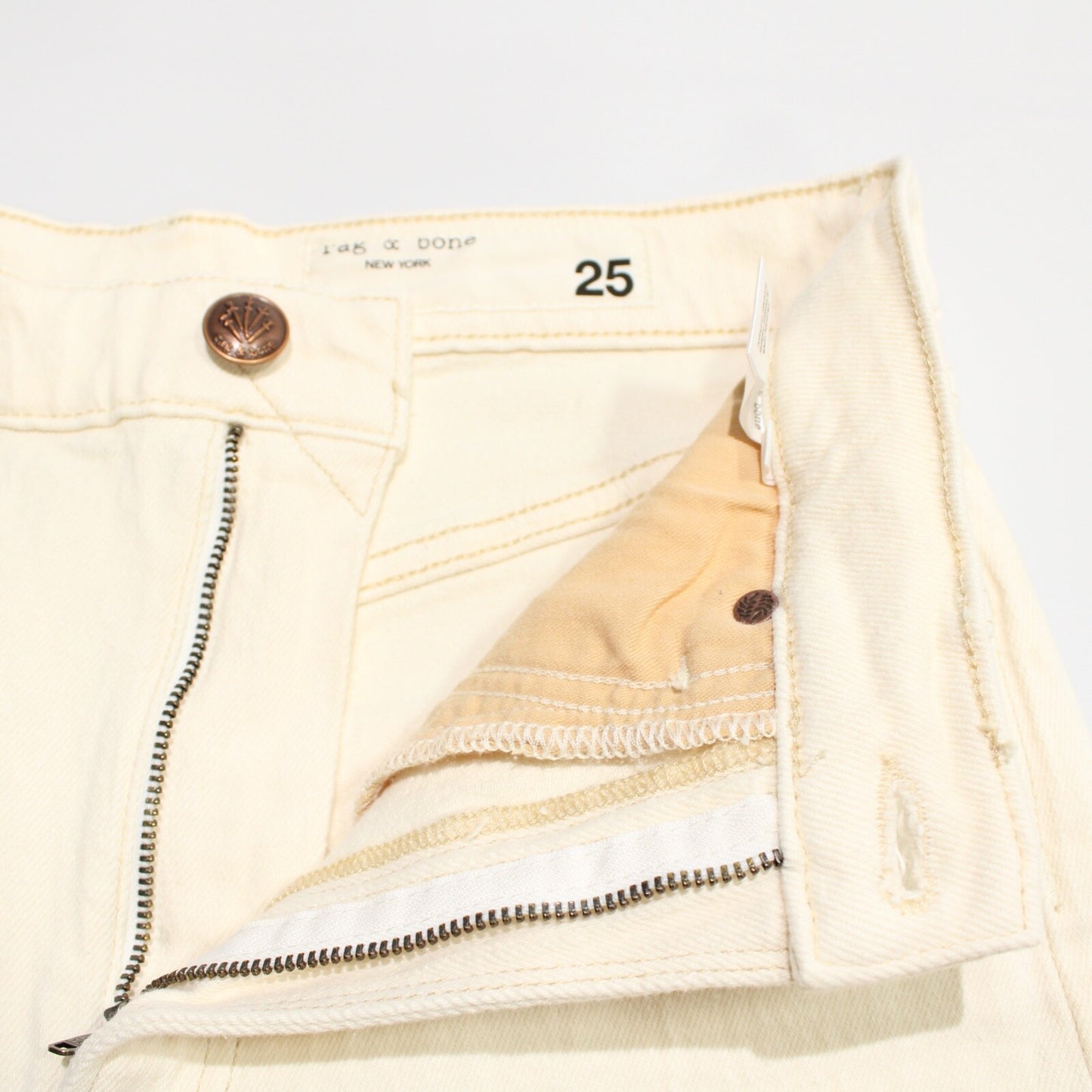 Rag & Bone NWT Jean Cut Shorts Size 25 US Bermuda In Solid Ecru Cotton Blend