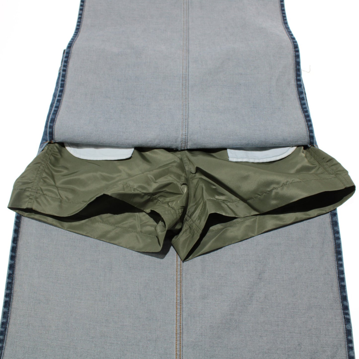 Sacai NWT Denim Skirt Size 3 in Blue with Green Built-in Shorts Cotton Blend