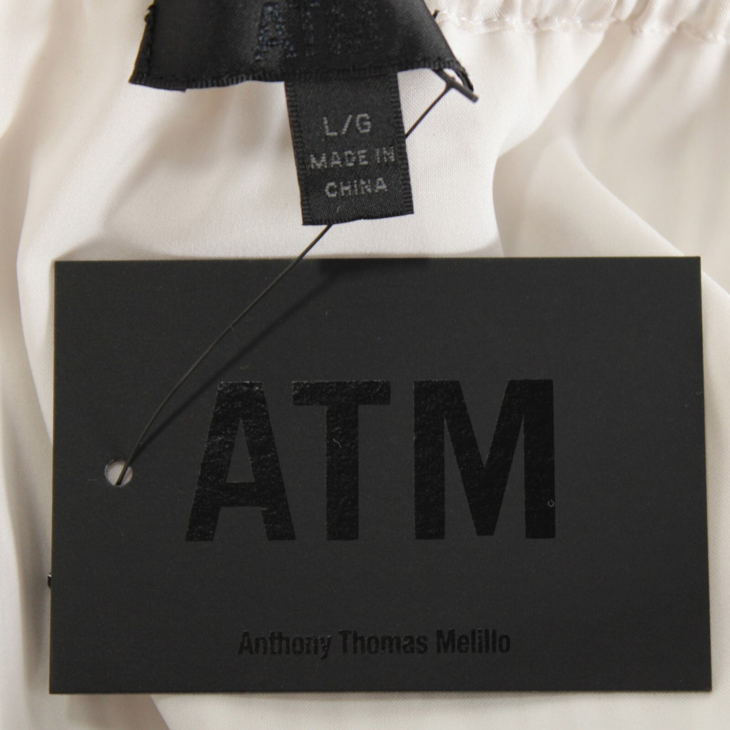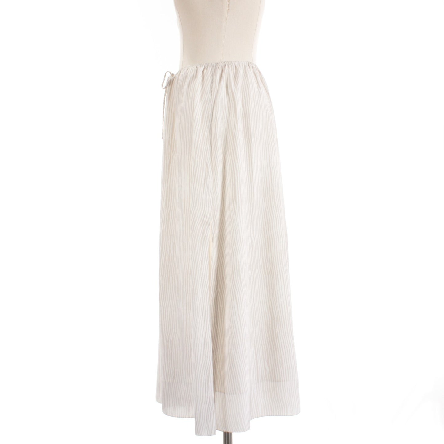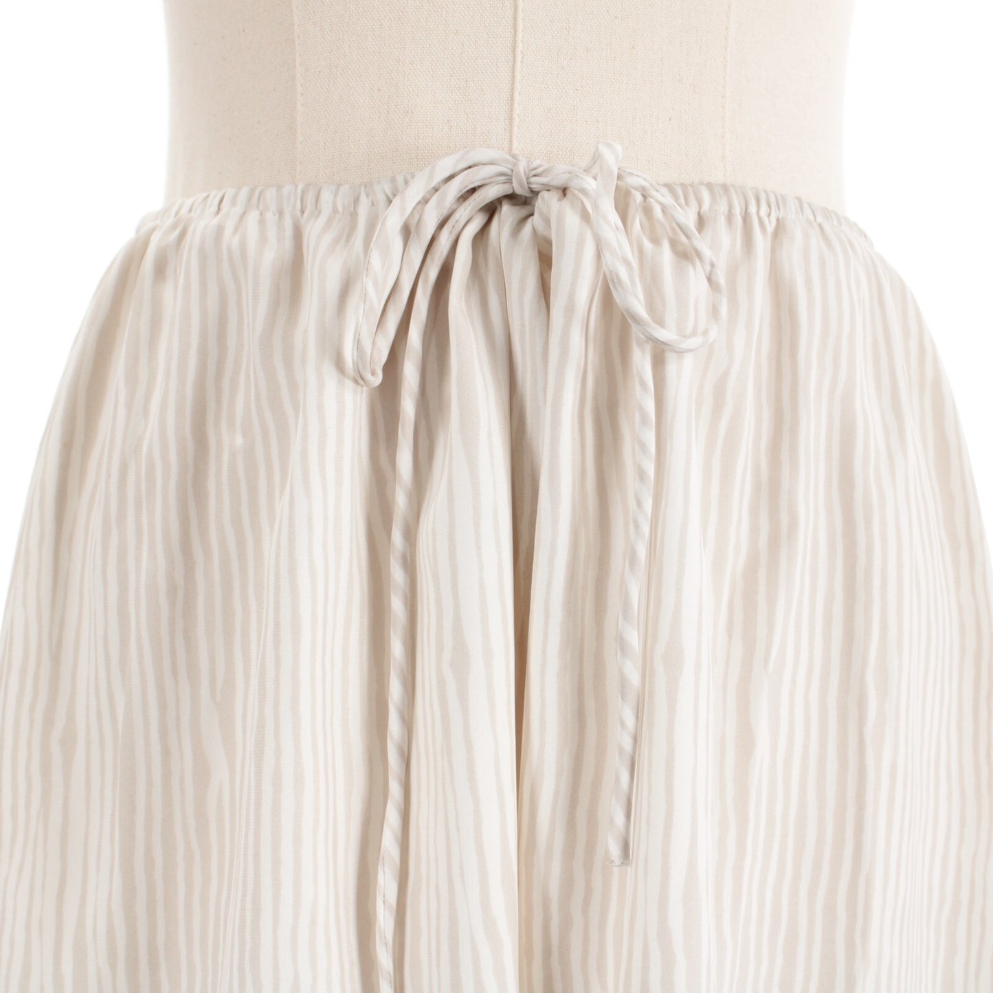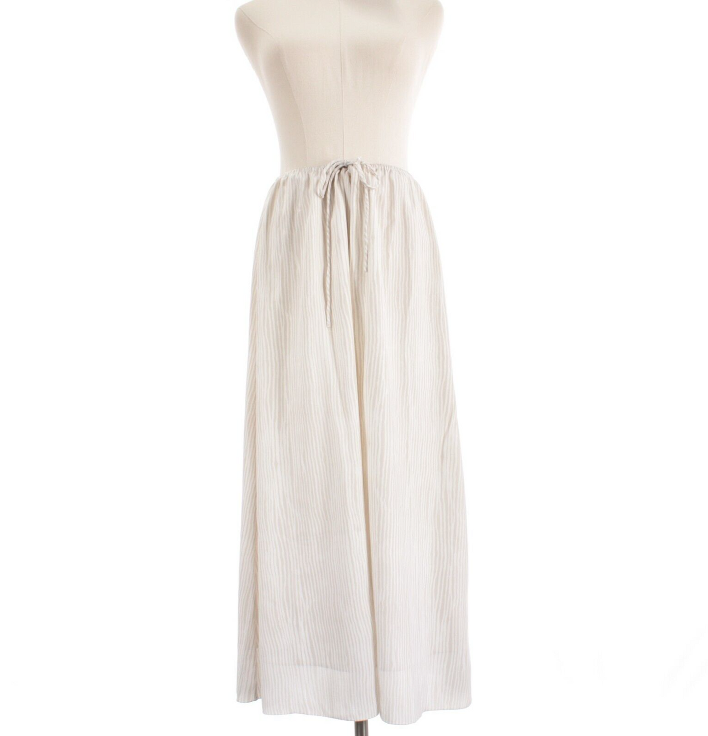 ATM NWT Drawstring Midi Skirt w/ Slit Size Large Beige/White Stripes 100% Silk