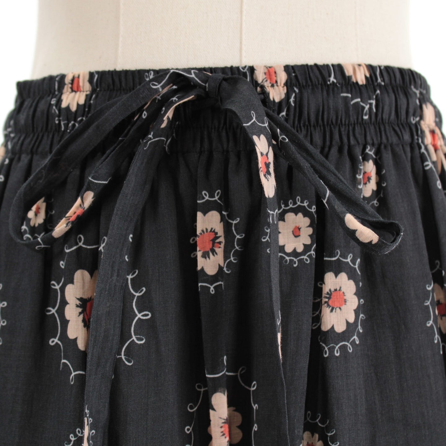 A.L.C. NWT 100% Linen Twist Waist Midi Skirt w/ Ruffle Detail Size 4 Solid Black
