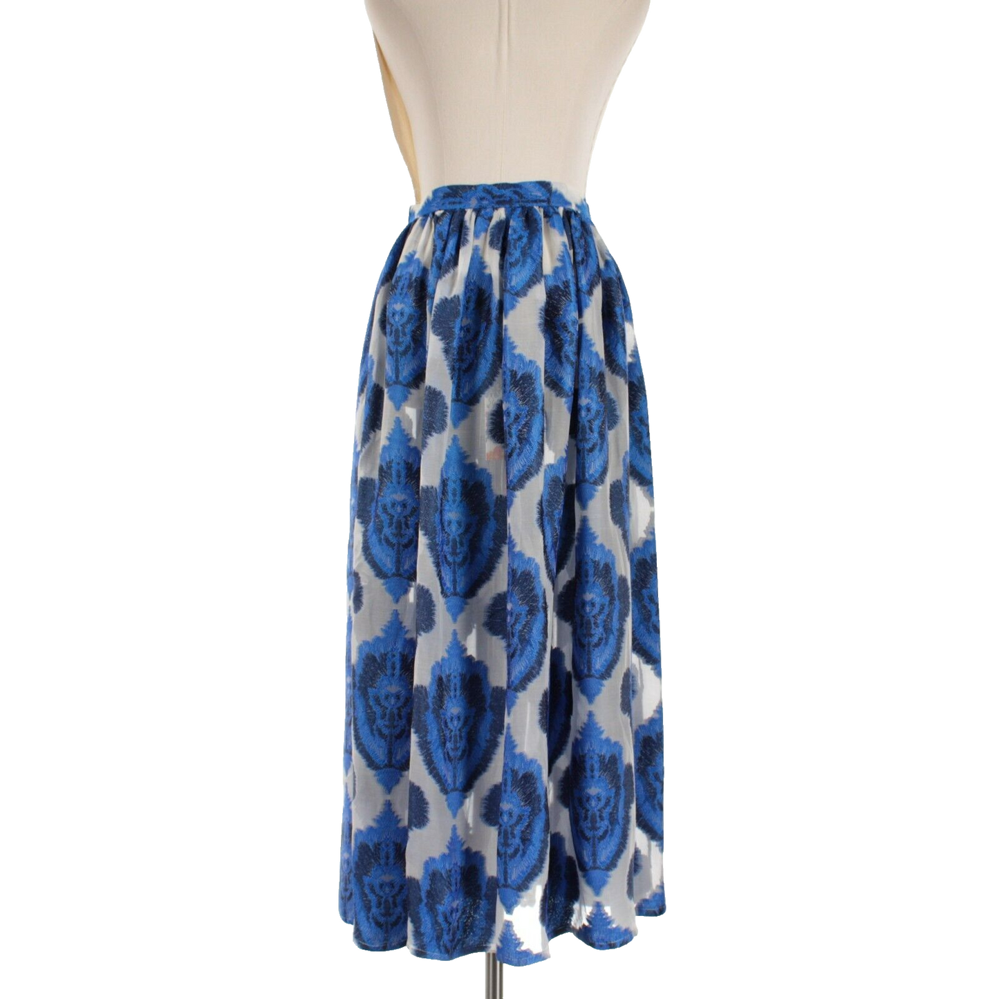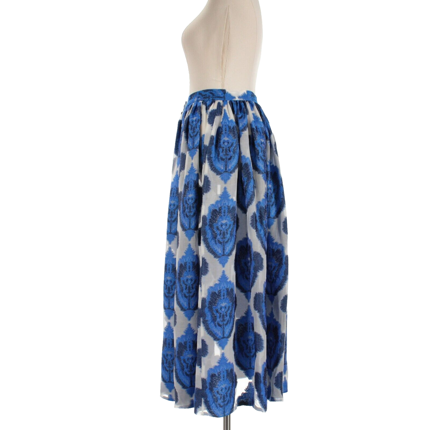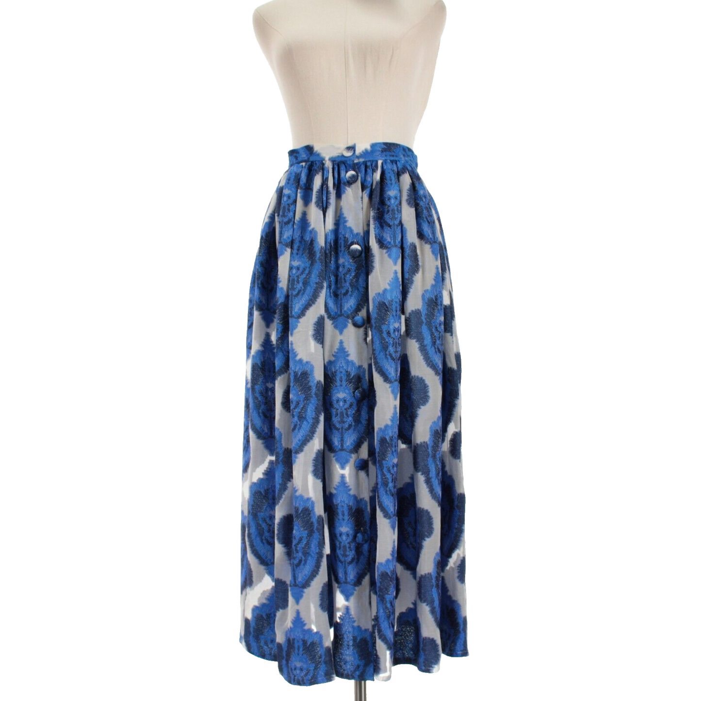 Rianna + Nina NWT Front Button Midi Skirt Size Small in Blue/White Silk Blend