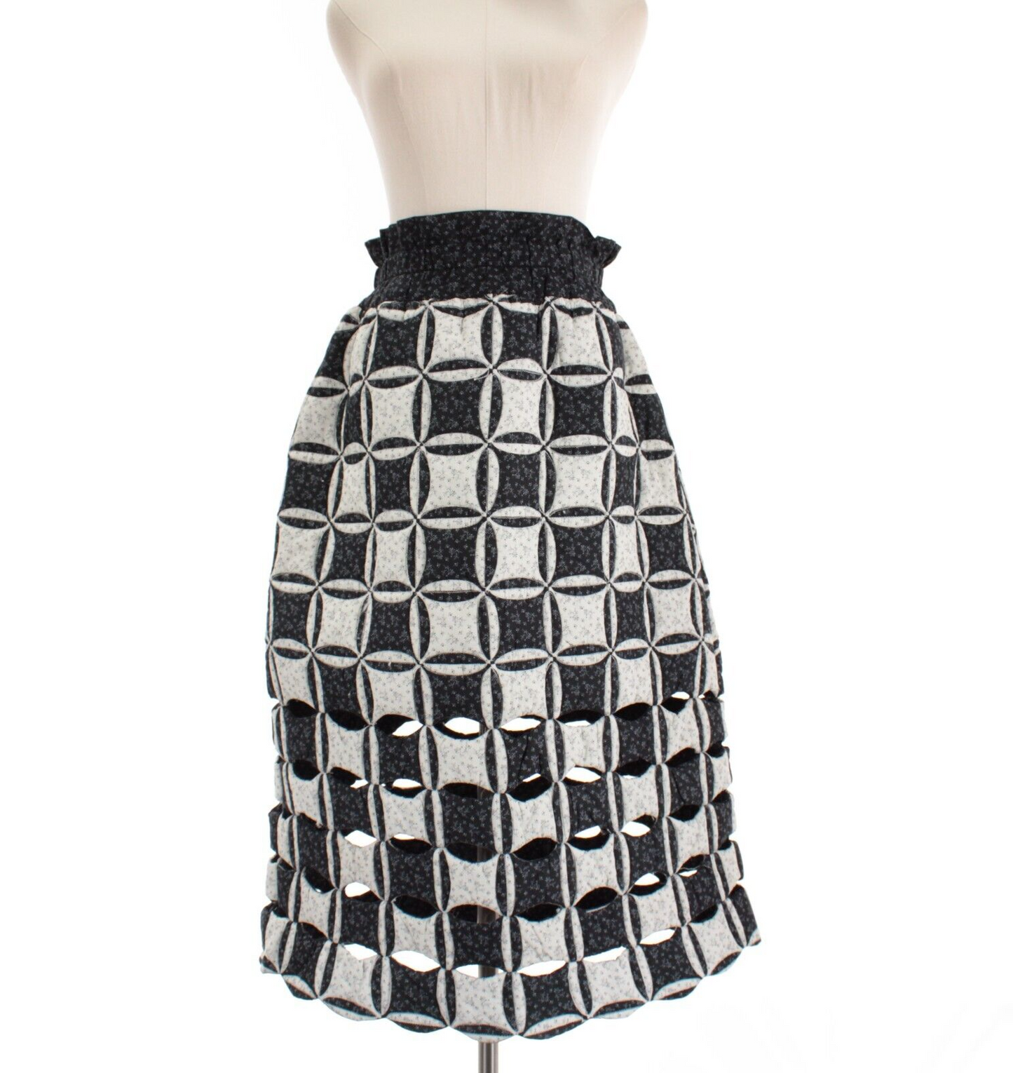 Sea NWT Catalina Calico Quilted Cut-Out Midi Skirt Size XS in Black/White/Blue