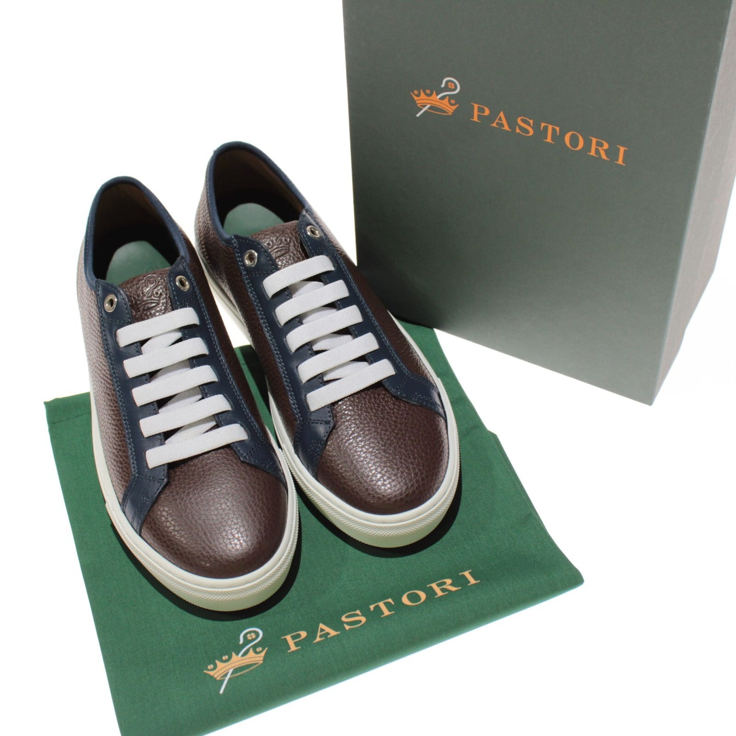 Pastori NWB Julius Slip-On Leather Sneakers Size 41 US 8 in Brown / Blue