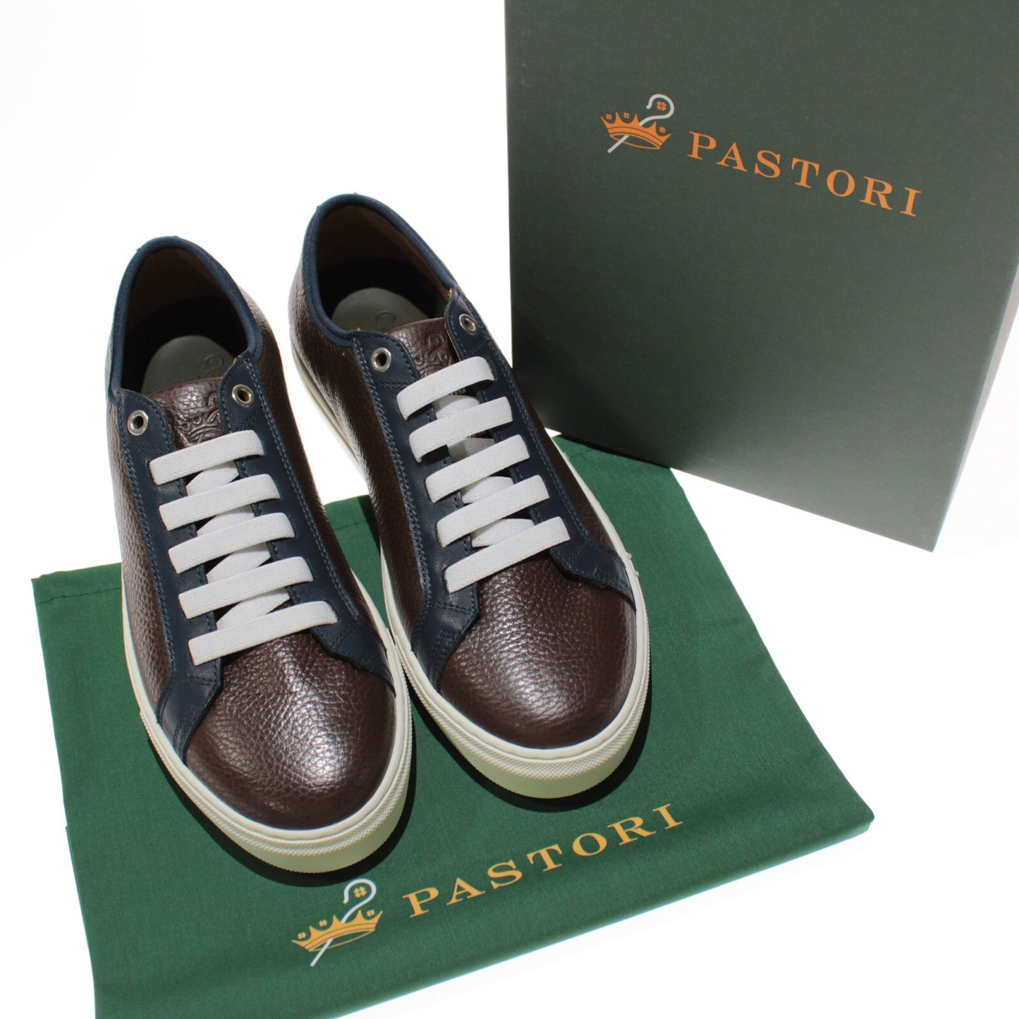 Pastori NWB Julius Slip-On Leather Sneakers Size 41.5 US 8.5 in Brown / Blue