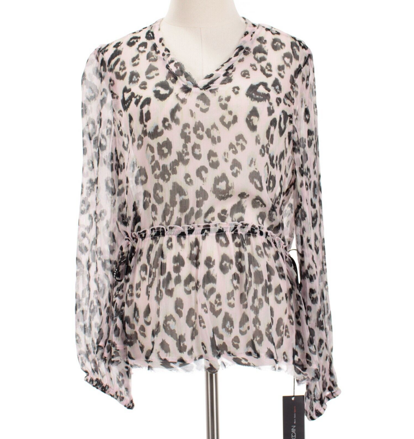 Marc Cain NWT Long Sleeve Leopard Print Blouse Size N3 US 8 in Pink/Black/Multi