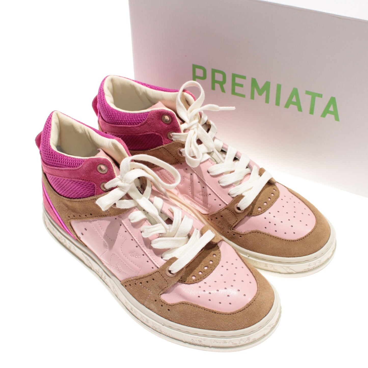 Premiata NWB Mid Quinn Sneakers Size 40 8 US In White Pinks & Brown
