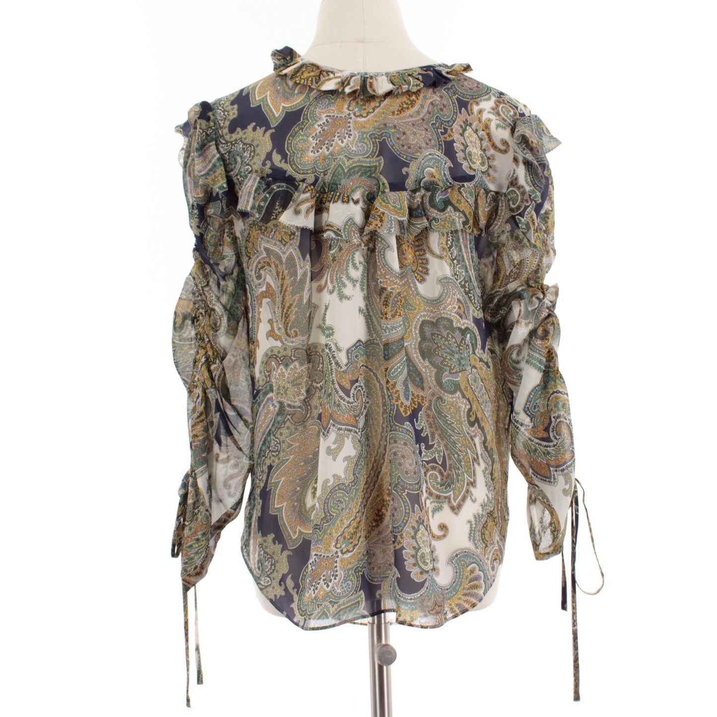 Veronica Beard NWT Howell Blouse Tie Neckline Size 8 in Green/Multi 100% Silk
