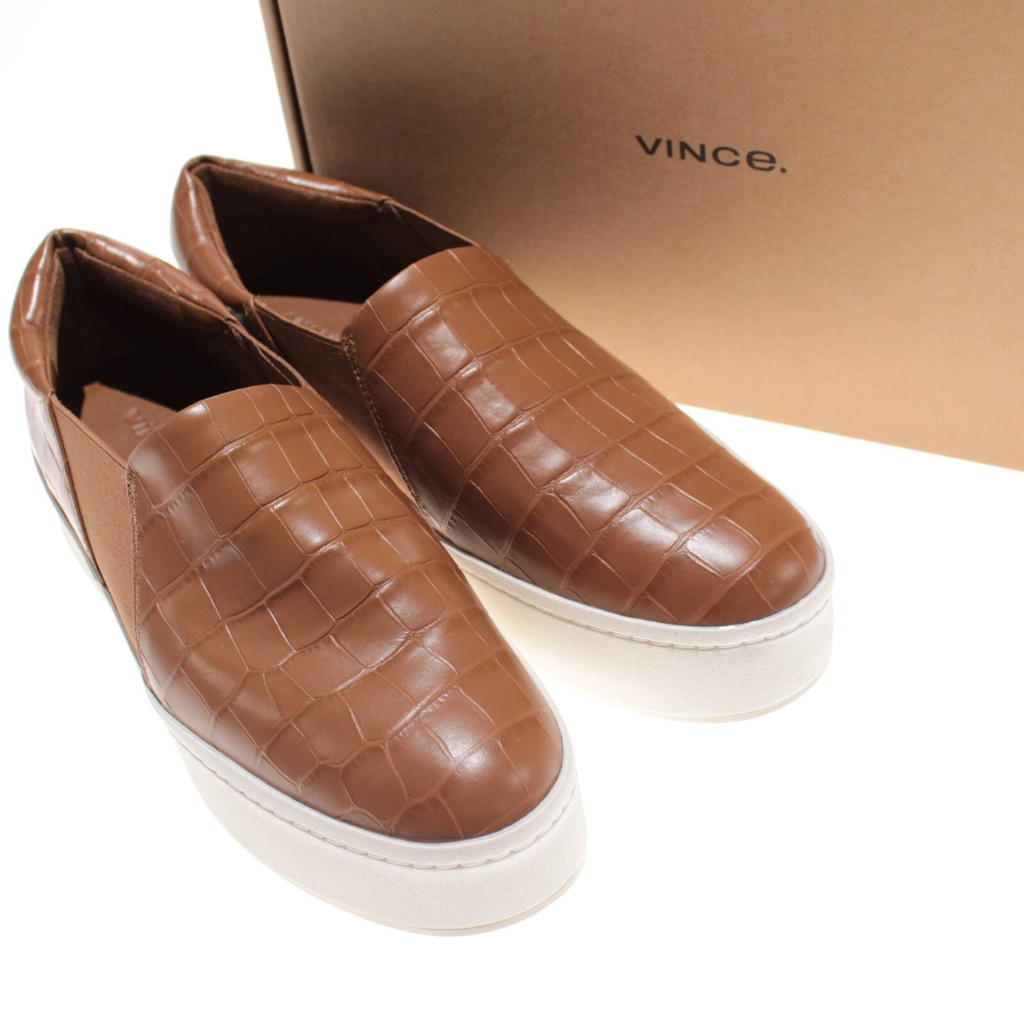 Vince NWB Warren Slip-On Sneakers Size 9 US Light Fawn Brown Embossed Leather