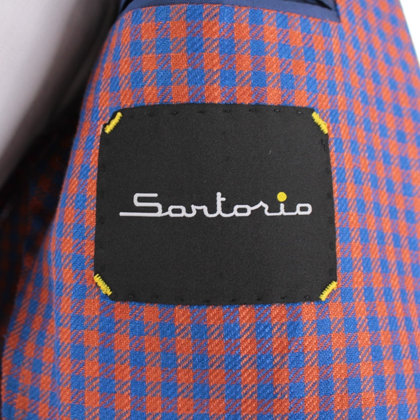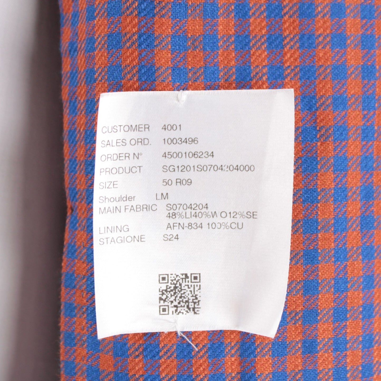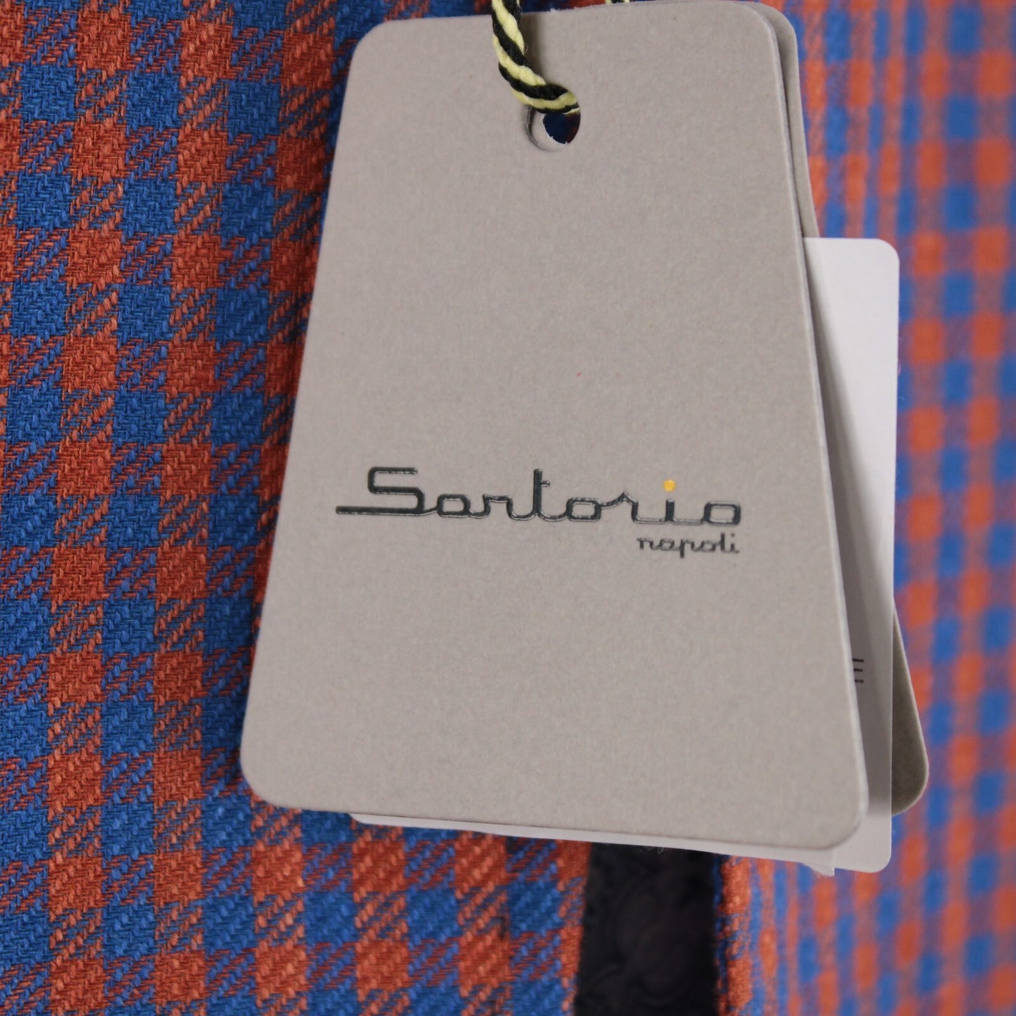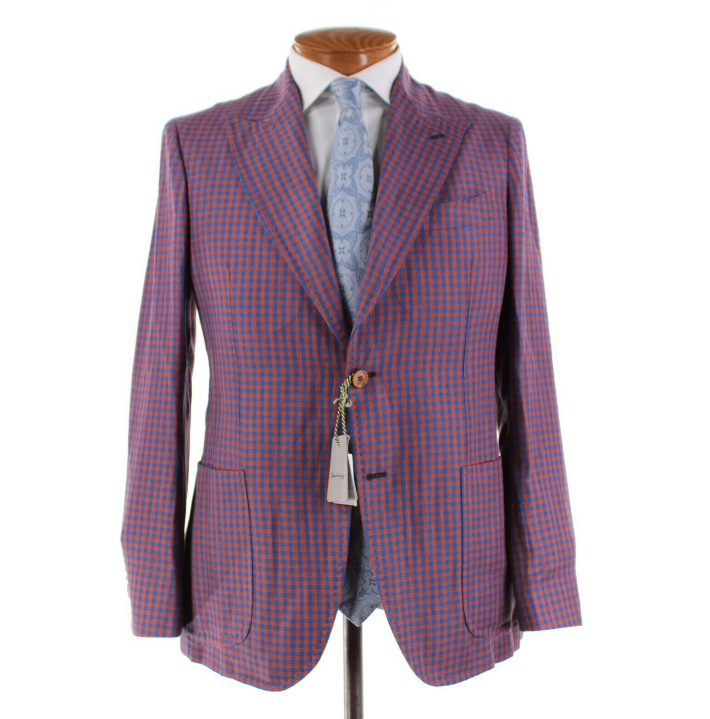 Sartorio Kiton NWT Linen Blend Sport Coat Size 50R (40R US) In Blue/Orange Check