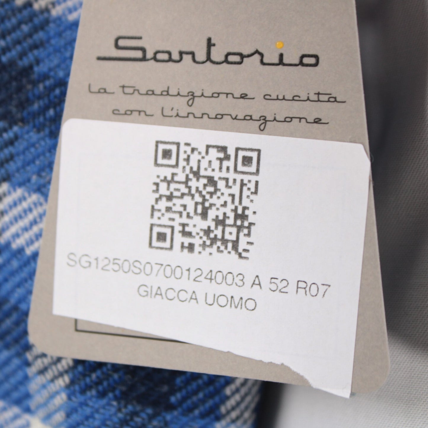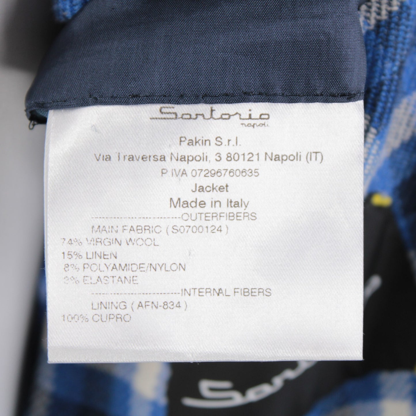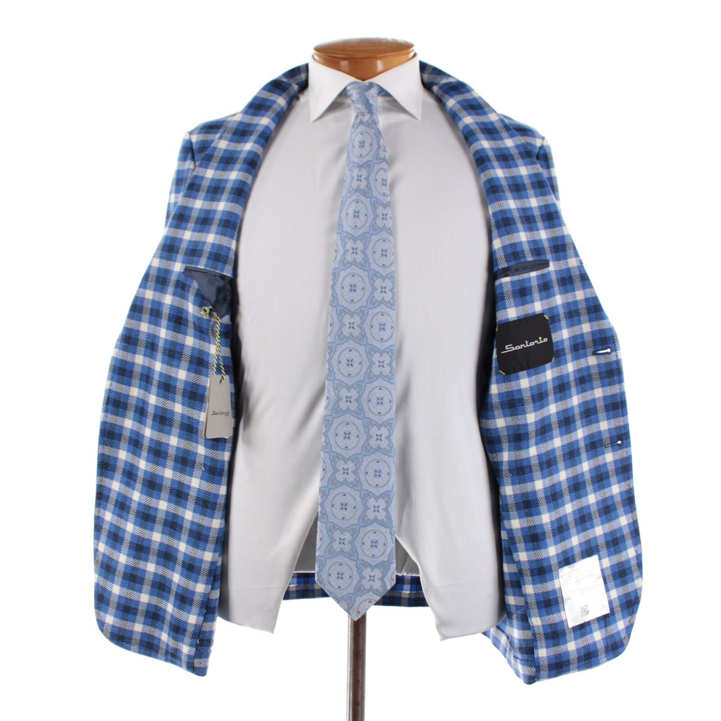 Sartorio NWT Wool Blend Sport Coat Size 52R (42R US) In Blues & White Plaid