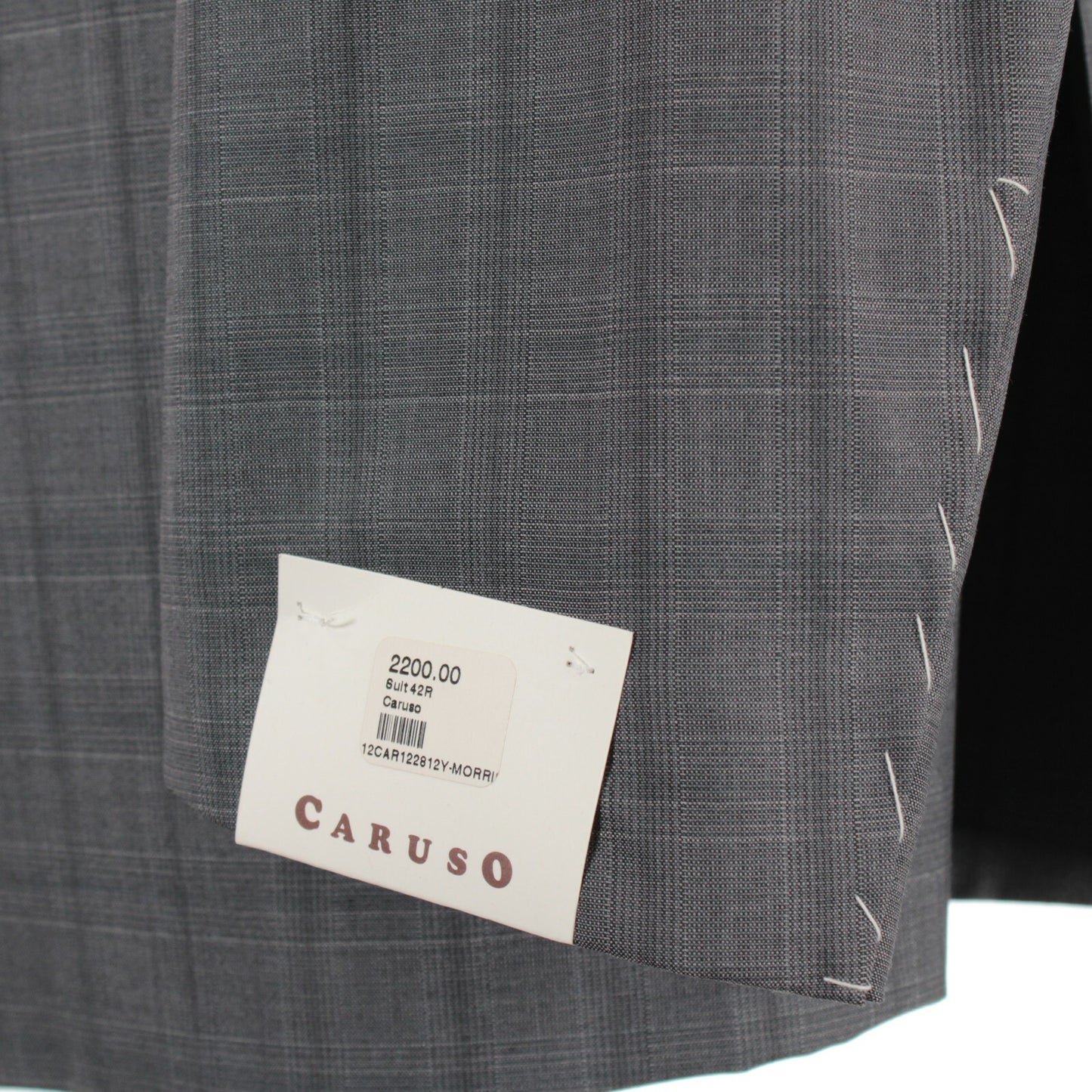 Caruso NWT 100% Wool Superfine 130s Suit Size 52R US 42 Grays/Light Blue Plaid
