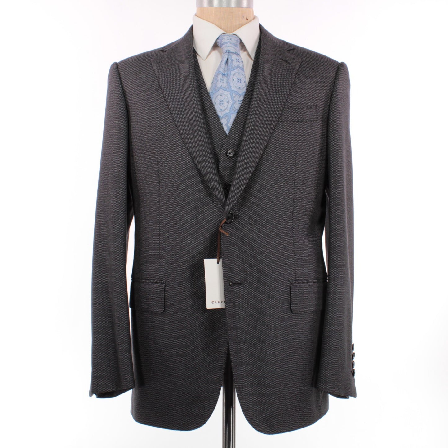Caruso NWT 100% Wool Three Piece Suit Size 50R US 40R in Gray/Black Birdseye
